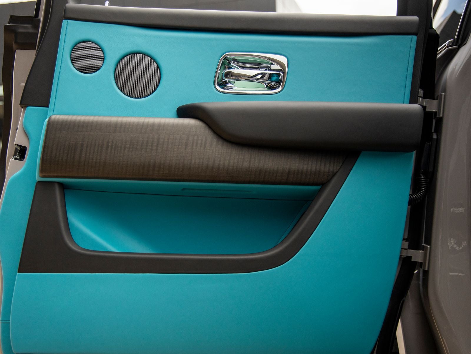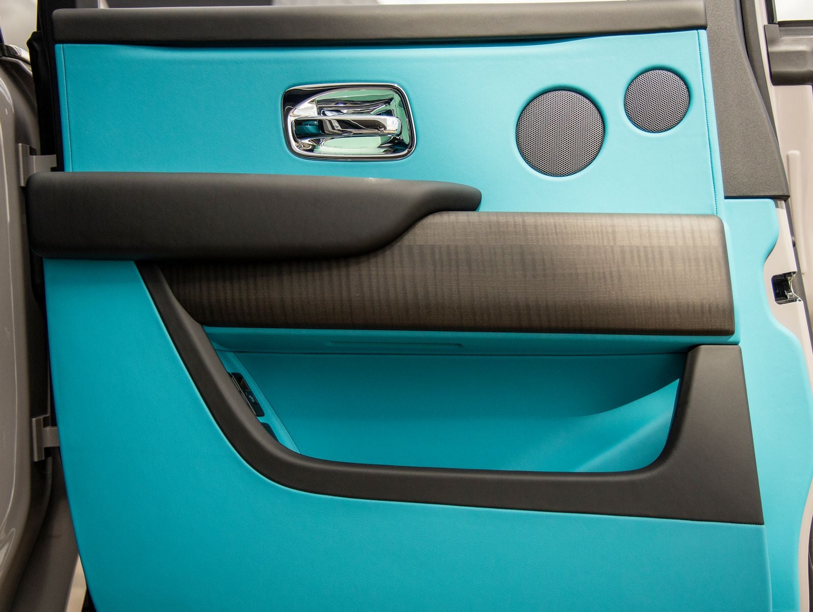 Step inside and the Turchese and Black Horizon Interior greets you, exuding an air of bespoke luxury that only Rolls-Royce can deliver. The Extended Leather Headliner and Shooting Star Headliner create an extraordinary cabin environment, while RR Monograms embroidered on all headrests reinforce the marques unmistakable identity. Open Pore Blackwood trim, Picnic Tables, and a Thicker Two-Tone Turchese Steering Wheel elevate both craftsmanship and comfort, while Front Ventilated and Massage Seats ensure every journey is first-class.
