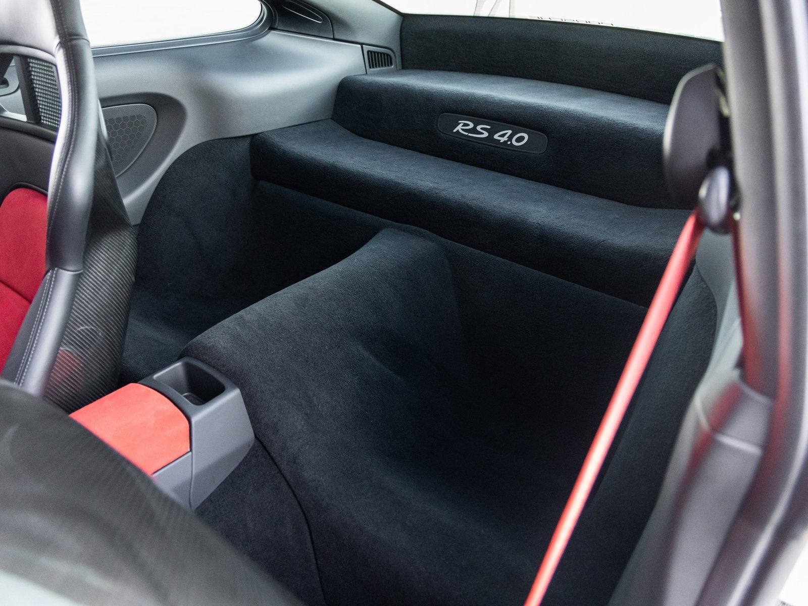 The GT3 RS 4.0 stands as a beacon of design and performance, its Carrara White exterior not just a color, but a badge of honor that reflects Porsche's illustrious racing heritage. Adorned with Wheels Painted in Black and equipped with the Front Axle Lifting System, it presents an aggressive and purposeful stance. From the track to the street, the RS 4.0 remains an icon of driver-focused engineering.