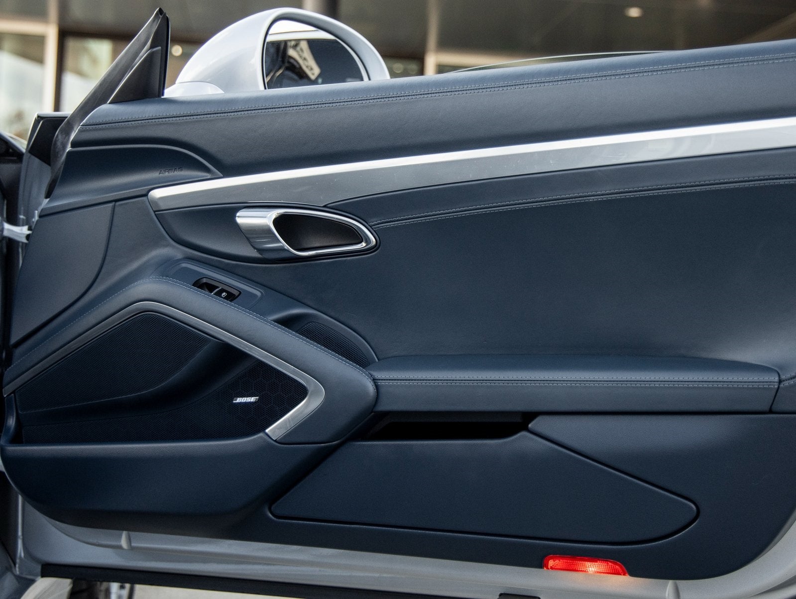 Step inside and the Yachting Blue leather interior greets you with bespoke elegance. The cabin boasts 14-way Power Sport Seats with Memory Package and Heated Front Seats for personalized comfort. The SportDesign Steering Wheel, White Instrument Dials, and Porsche Crests embossed on the Headrests blend luxury with motorsport character. The Storage Compartment Lid with Porsche Crest adds a final touch of exclusivity.