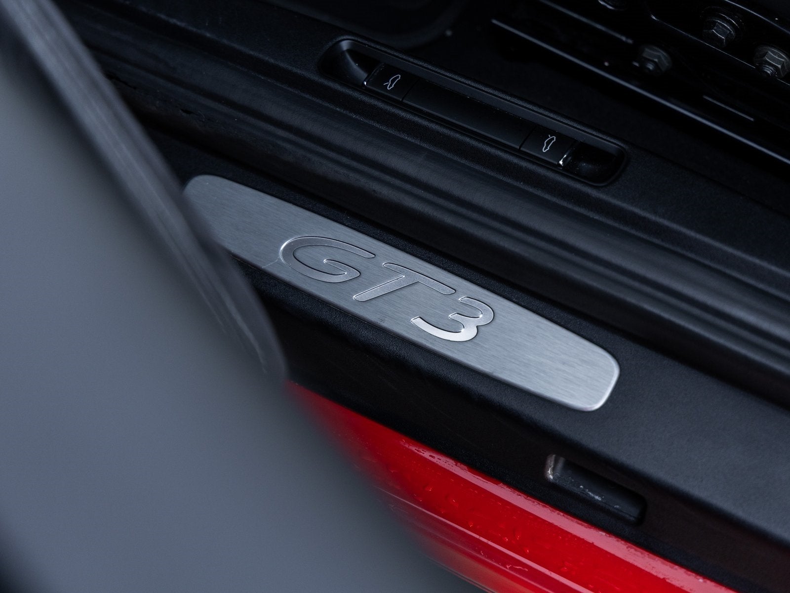 The GT3 stands as a beacon of design and performance, its Guards Red exterior not just a color, but a badge of honor that reflects Porsche's illustrious racing heritage. Adorned with LED Headlights including Porsche Dynamic Light System Plus (PDLS Plus) and Porsche Ceramic Composite Brakes (PCCB), it presents an intimidating stance. The Front Axle Lift System ensures enhanced practicality for daily driving, while the Extended Range Fuel Tank underscores its touring capability.