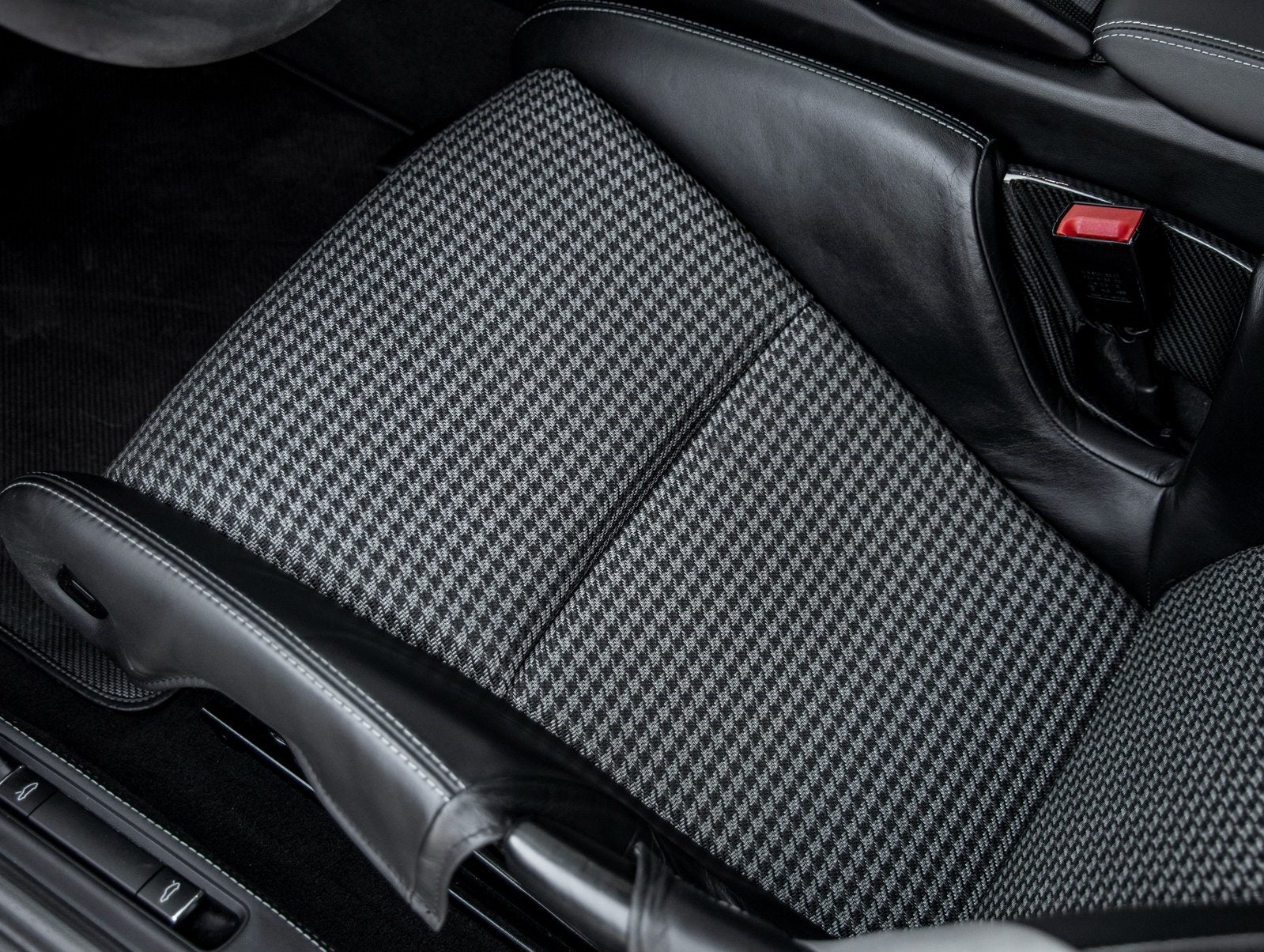Step inside and the Black / GT Silver Leather and Microfiber interior greets you, exuding an air of luxury that only Porsche can deliver. The Alcantara Sun Visors, Alcantara Belt Outlet Trim, Carbon Fiber Floor Mats with Leather Edging, and Door Panels in Leather/Alcantara showcase a cabin where performance and elegance converge. The vehicle key is also painted to match, and Air Vent Slats are finished for added refinement.
