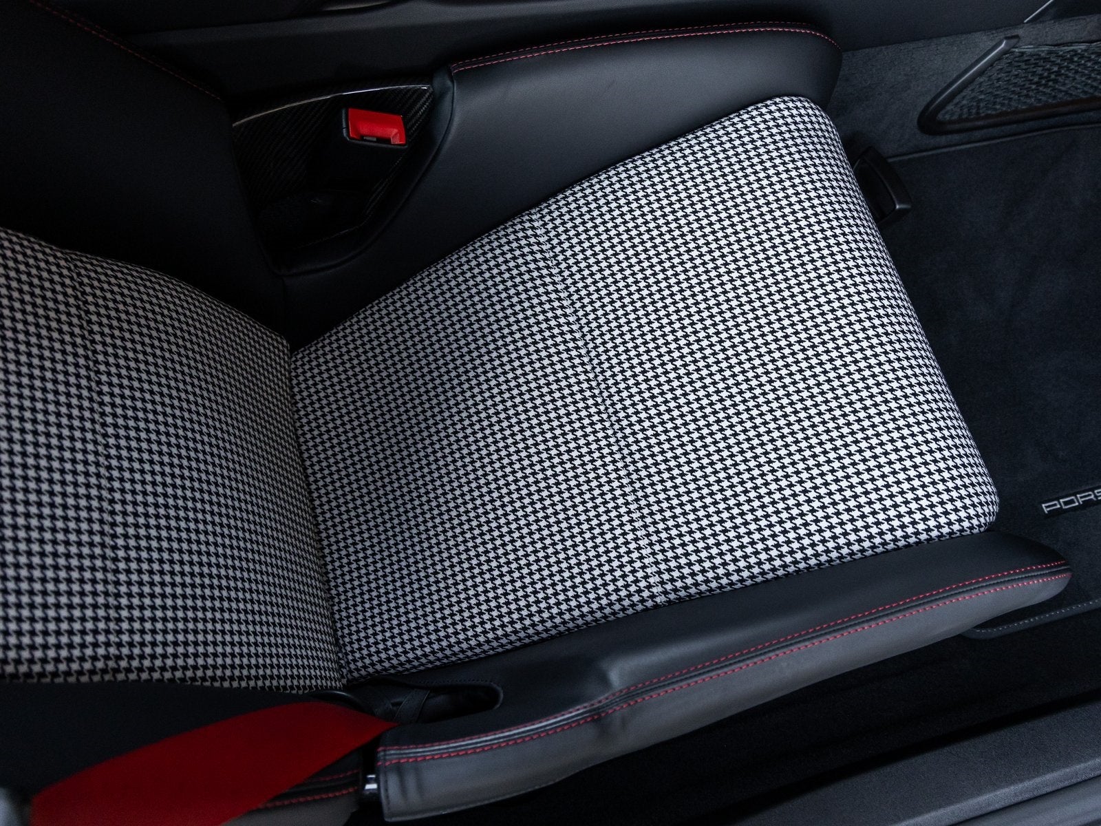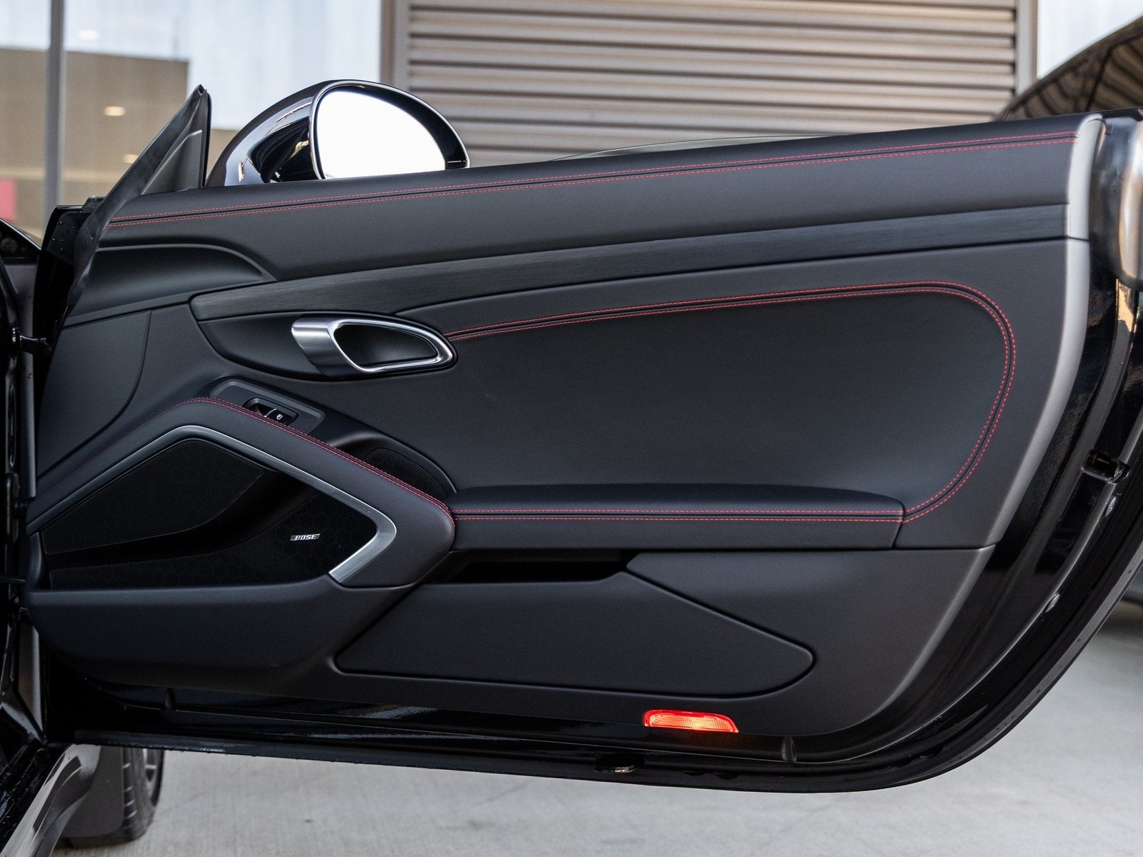 Step inside and the Black Leather Interior with Cloth Seat Centers and Red Stitching welcomes you into a space tailored for focused driving. Full Bucket Seats provide race-inspired support, while Seat Belts in Guards Red and Red Interior Stitching offer striking visual contrast. The BOSE Surround Sound System ensures every drive is accompanied by a concert-quality audio experience, and the Chrono Package with Preparation for Lap Trigger highlights its motorsport DNA.