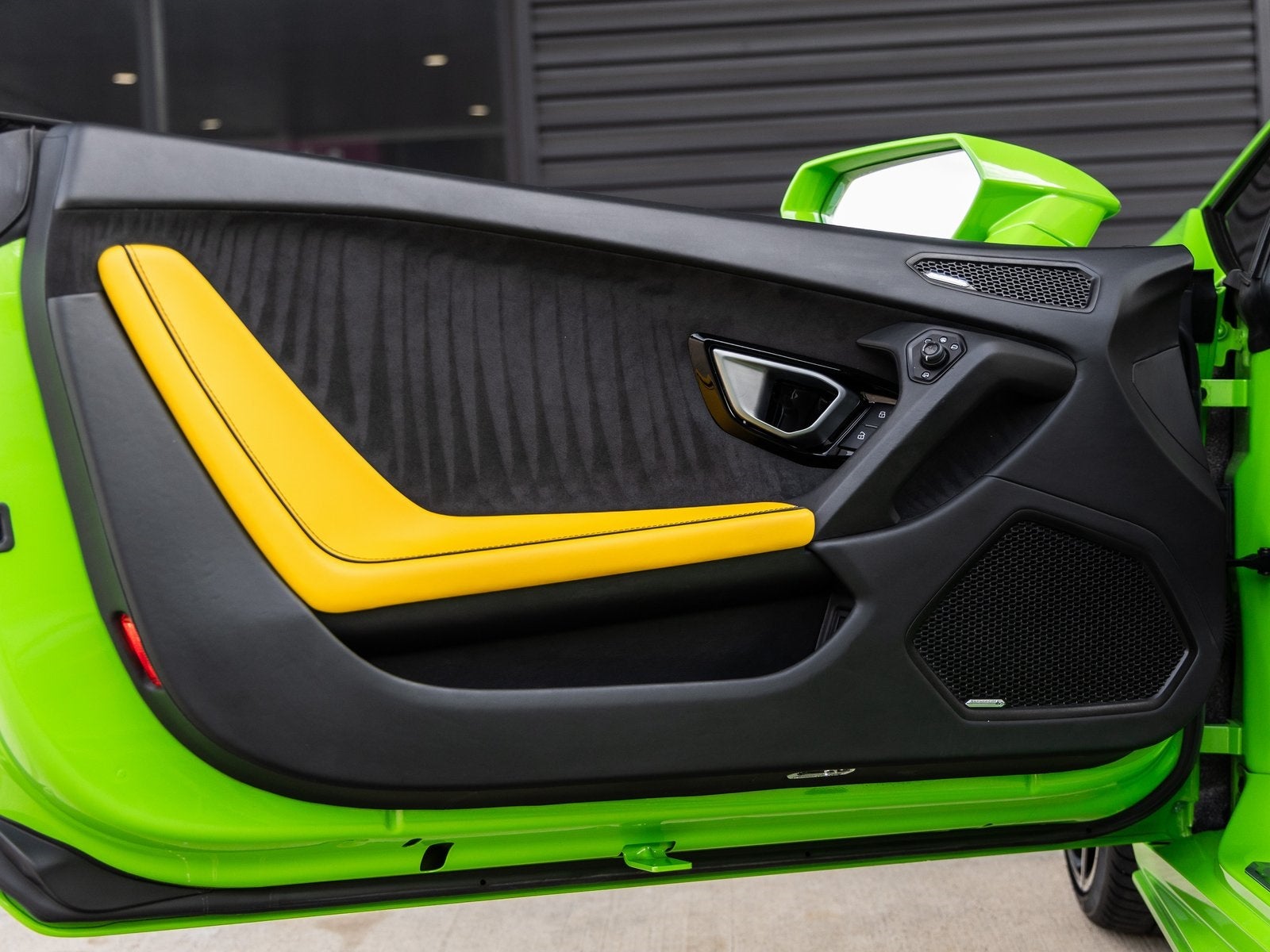 Step inside and the Nero Ade leather interior greets you, elevated by Contrast Stitching, Optional Stitching on Steering Wheel, and Embroidered Lamborghini Shields on the headrests. Features like Electric and Heated Seats, EVOTRIM Sport Leather, and the Ambient Light Package create a sophisticated cabin environment. The Sensonum Lamborghini Sound System elevates every drive with concert-hall audio quality, and amenities such as the Smartphone Interface, Travel and Smoker Package, and Floor Mats with Leather Inserts add thoughtful practicality.