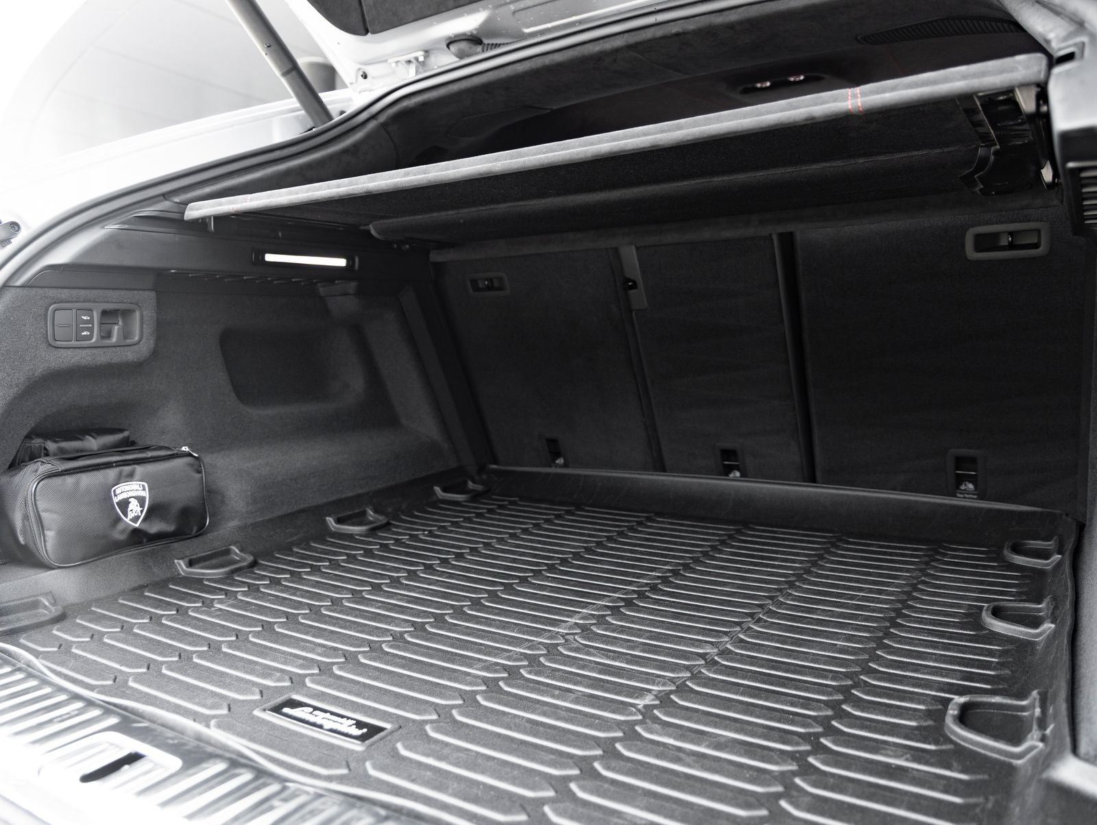 Step inside and the Nero Ade interior welcomes you with a perfect balance of luxury and sport. Featuring a Bicolor Sportivo interior, full electric comfort seats, and contrast stitching, the cabin is both driver-focused and exceptionally refined. Open pore wood inserts and embroidered Lamborghini logos add an elevated touch of craftsmanship, while features like rear seat entertainment and ambient lighting ensure comfort for every passenger.