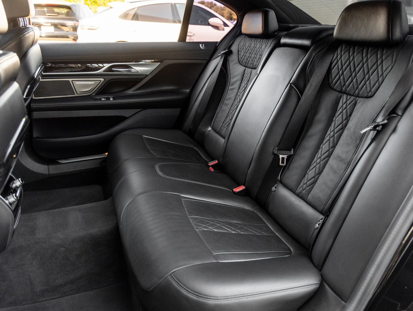 The 750i xDrive stands as a beacon of executive luxury and performance, its Black Sapphire Metallic exterior not just a color, but a statement of refined elegance and authority. Adorned with BMWs signature kidney grille, sleek adaptive LED headlights, and bold body lines, it presents a commanding and distinguished presence on the road. The aerodynamic design and refined detailing enhance both aesthetics and performance, making every arrival unforgettable.