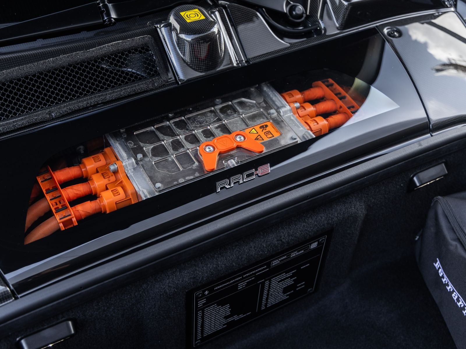 Engine and Performance: At the heart of this mechanical masterpiece is a revolutionary 4.0-liter twin-turbocharged V8 paired with three electric motors, delivering a combined 986 horsepower and 590 lb-ft of torque. This plug-in hybrid system is mated to an 8-speed dual-clutch transmission, providing instantaneous acceleration and seamless power delivery. The Suspension Lifter and advanced all-wheel-drive system ensure this Ferrari balances track-ready ferocity with everyday usability.