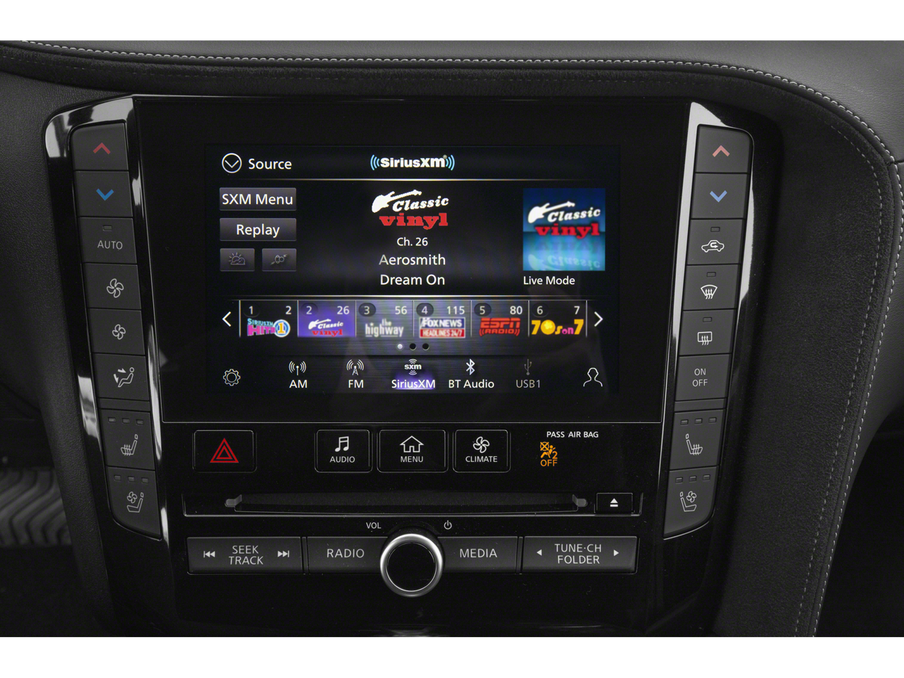 - Radio: Bose Performance Series Audio System -inc: 16 speakers, metallic speaker grilles on tweeter, 4 USB connection ports, Apple CarPlay and Android Auto, dual display system w/upper 8" and lower 7" HD touch screens, INFINITI voice recognition, HD Radio technology, SiriusXM radio w/advanced audio features w/3-month complimentary trial, streaming audio via Bluetooth®, Bluetooth® hands-free phone system, Siri eyes free, hands-free text messaging assistant, active noise cancellation and navigation package including 5-year premium traffic and MapCare complimentary trial, SiriusXM Traffic and Travel Link w/3-month complimentary trial, automatic collision notification and emergency call and Wi-Fi hotspot