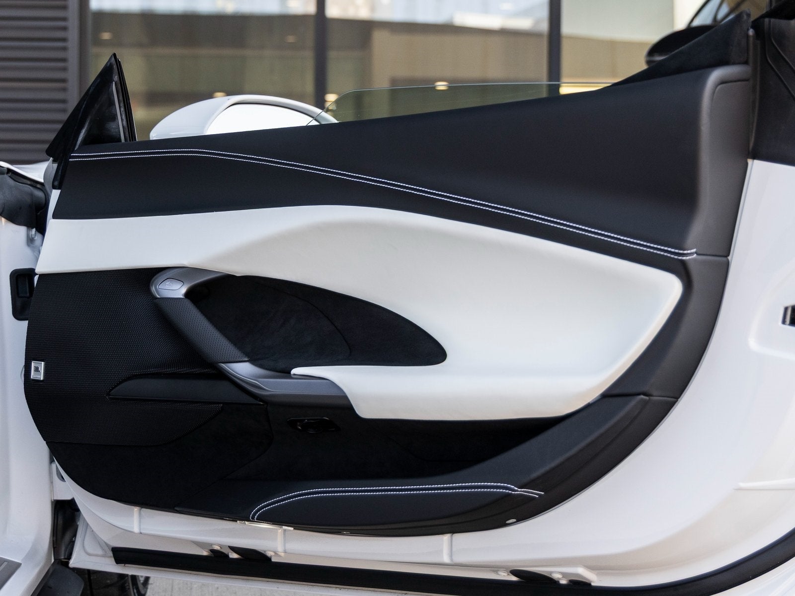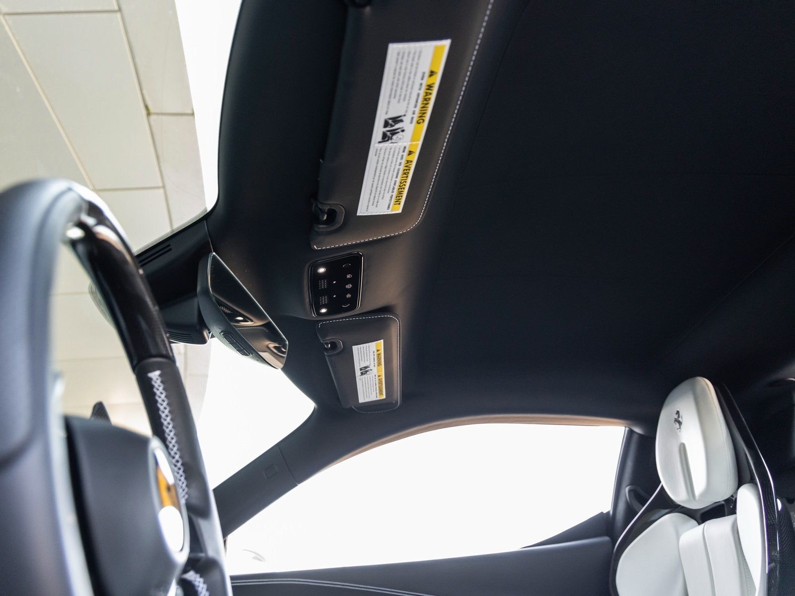Step inside and the White Leather interior greets you, exuding an atmosphere of tailored luxury blended seamlessly with motorsport DNA. Special Leather upholstery, Cavallino Stitched on Headrests, and Coloured Inner Details elevate the cabins bespoke character. The Carbon Fibre Upper Tunnel Trim and Carbon Fibre Steering Wheel with LEDs bring Formula 1-inspired technology directly to your fingertips, while the Leather Headliner and Electrochromic Rear-View Mirror reflect meticulous attention to detail.