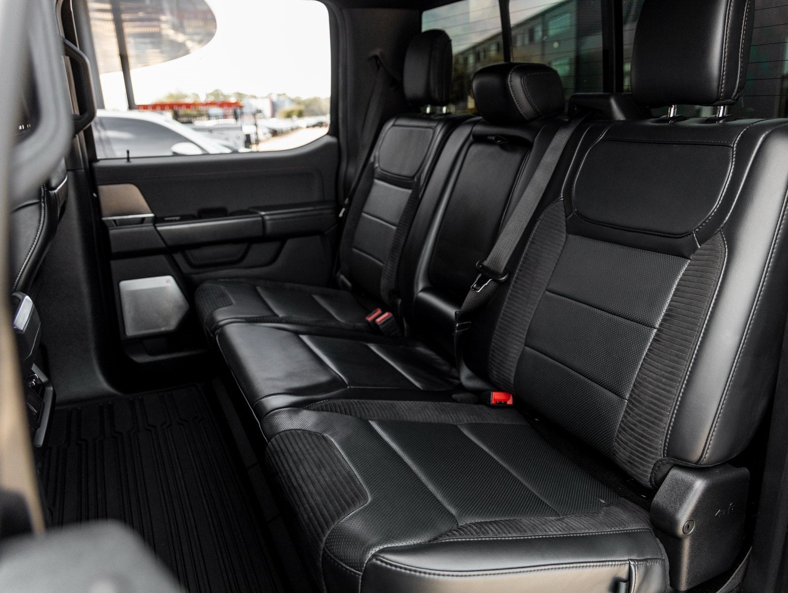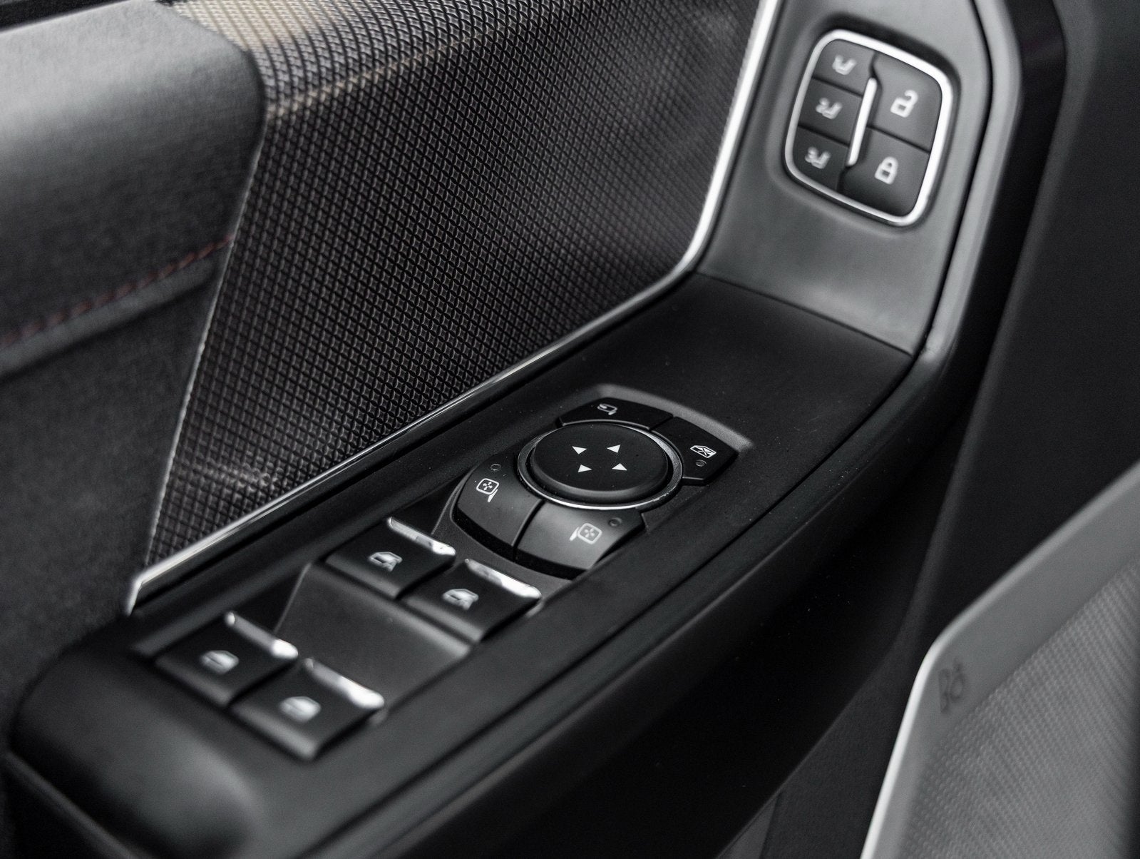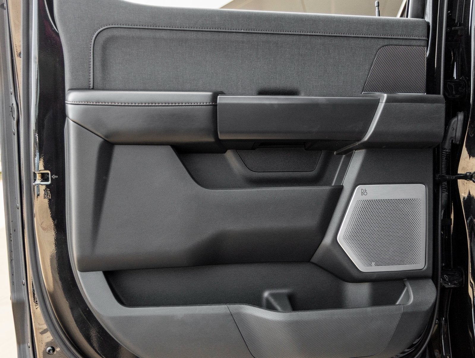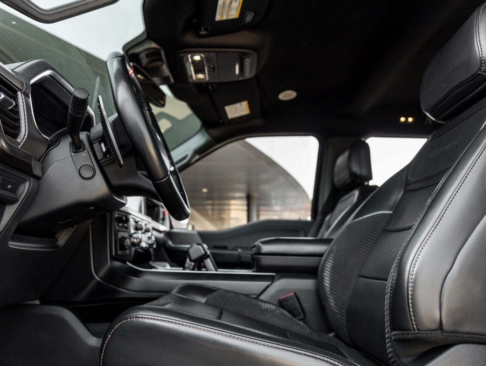 Step inside and the Black Leather interior welcomes you with a blend of durability and comfort. Raptor-branded leather bucket seats, a leather-wrapped steering wheel, and a Raptor-unique center stack create a driver-focused cockpit. The interior work surface, partitioned lockable storage, wireless charging pad, and B&O Unleashed Sound System with 18 speakers underscore the Raptors balance of utility and premium features.