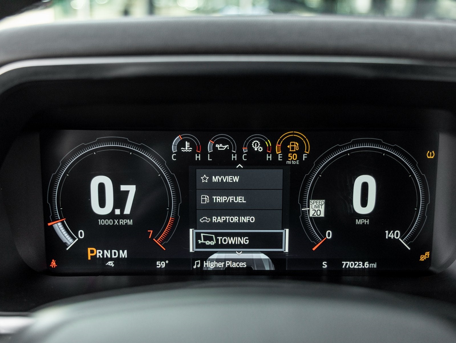Engine and Performance: At the heart of this high-performance truck is a 3.5-liter High-Output EcoBoost V6 engine, delivering an impressive 450 horsepower and 510 lb-ft of torque. Paired with an advanced 10-speed automatic transmission and an electronic shift-on-the-fly 4X4 system, the Raptor is engineered to conquer challenging landscapes with confidence. A Torsen front differential, 4.10 electronic locking rear axle, and Terrain Management System further solidify its reputation as a true off-road powerhouse.