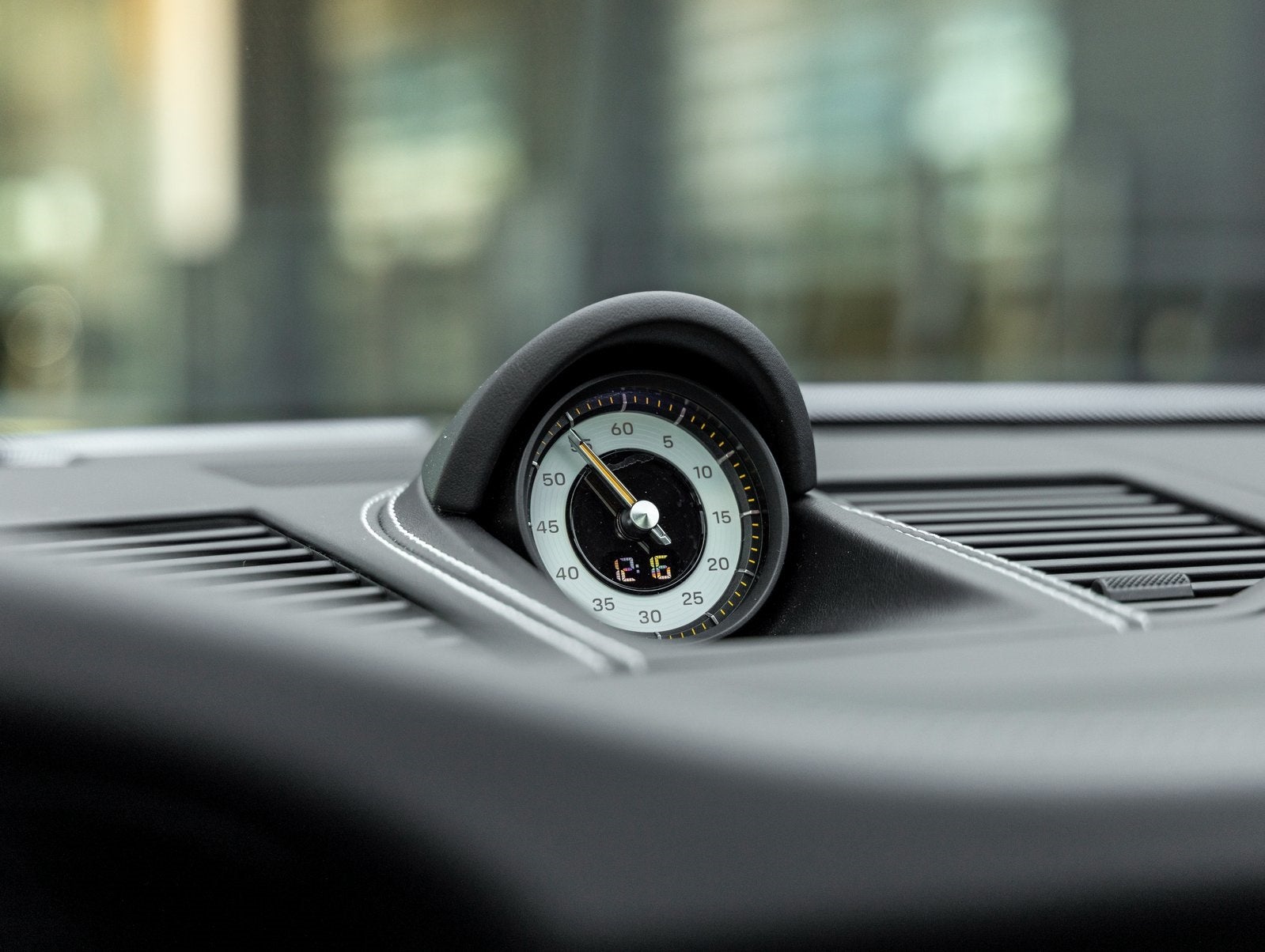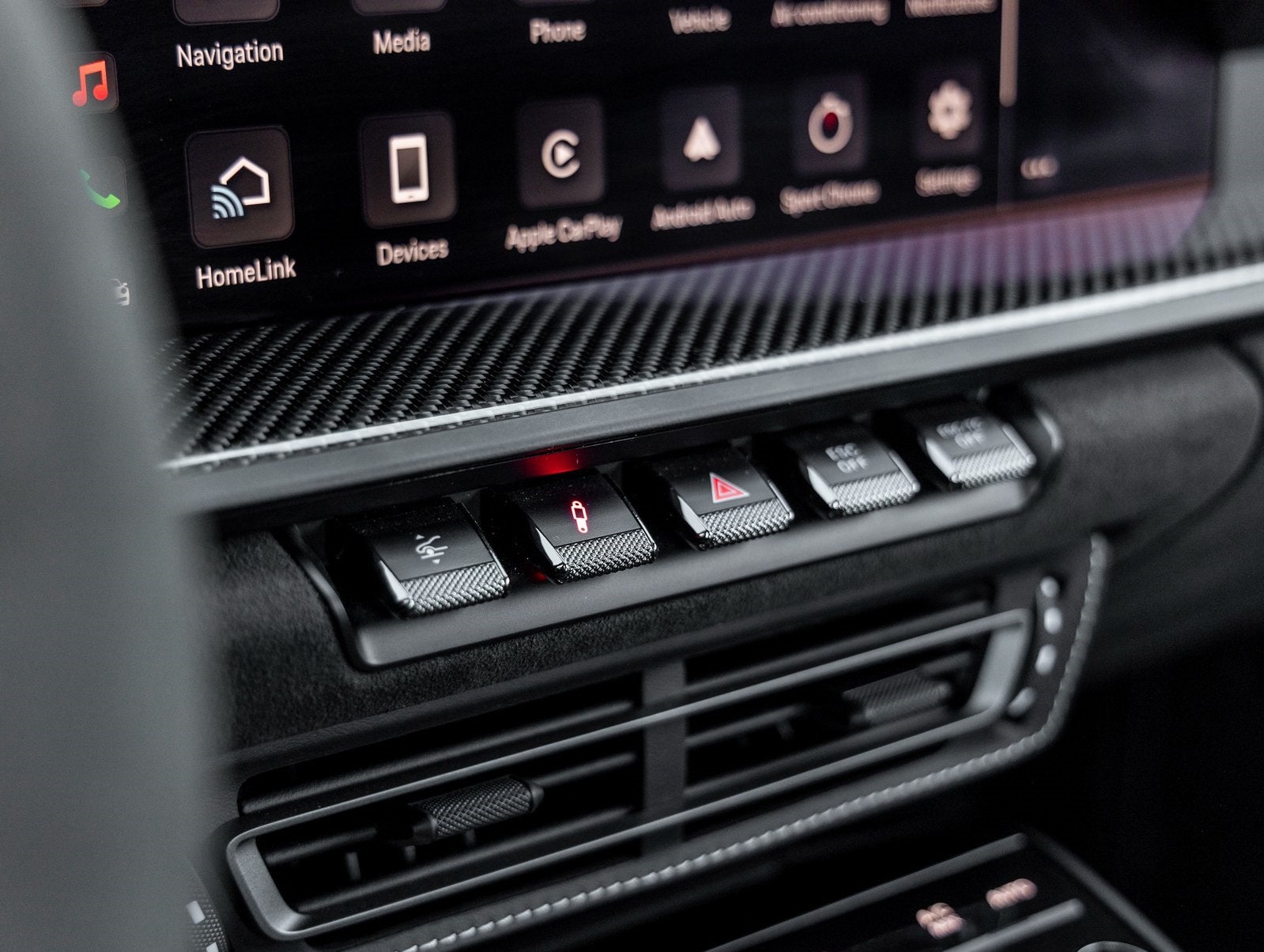 Step inside and the Leather/Race-Tex Interior in Black with GT Silver Stitching greets you, exuding an air of motorsport luxury. Full Bucket Seats and Extended Leather Package in GT Silver bring together form and function, while thoughtful touches like the Sun Visors and Seat Belt Outlet Trims in Race-Tex, Sport Chrono Stopwatch Dial in White, Central Tachometer in White, and Silver Grey Seat Belts reflect Porsche's attention to the finest details. A BOSE Surround Sound System ensures your soundtrack is as exhilarating as your drive.