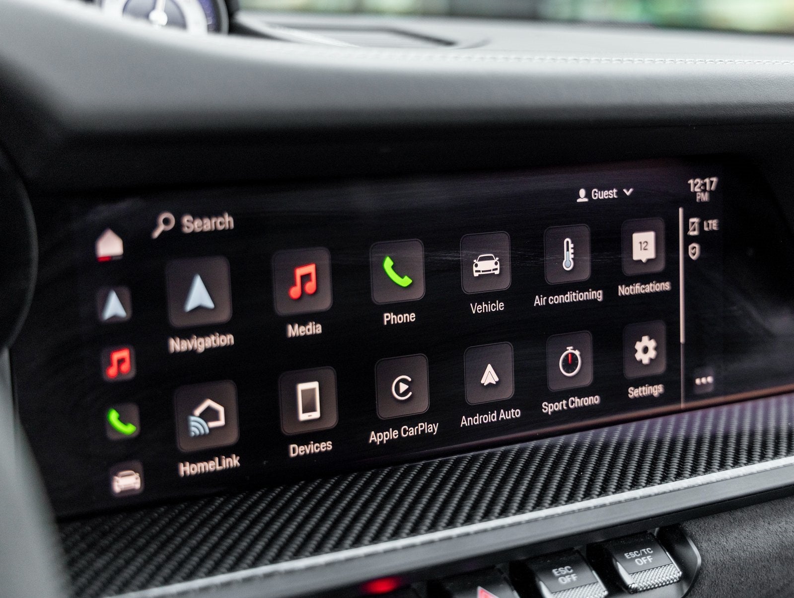 - Radio: Porsche Communication Management (PCM) -inc: online navigation module, Connect Plus (wireless Apple CarPlay and wired Android Auto, LTE communication module, wireless internet access and numerous Porsche Connect Services), SiriusXM w/360L (3-month trial), integration of Apple Music and Apple Podcasts, voice pilot w/natural language understanding and activation via Hey Porsche, navigation plus w/real time traffic Information and online map update, sound package plus (analog sound system, 8 loudspeakers, 150-watt total output w/integral amplifier and digital signal processing) and voice control