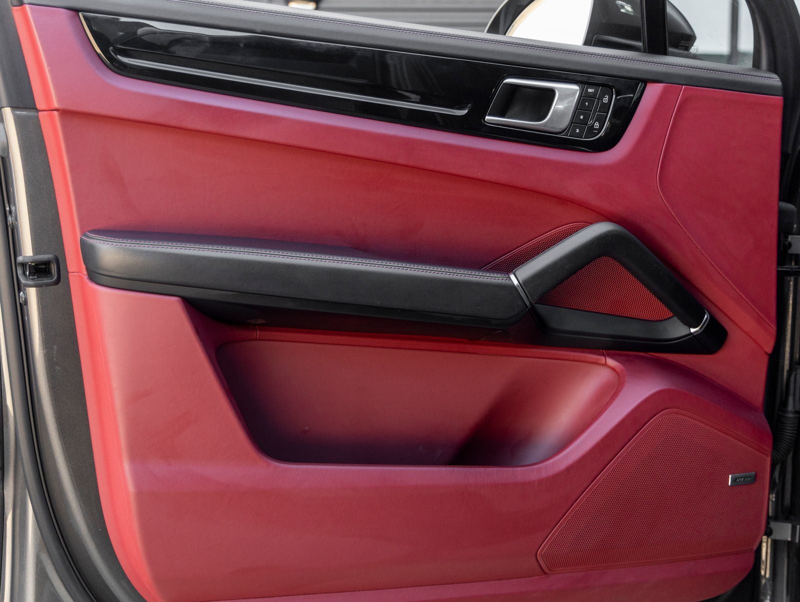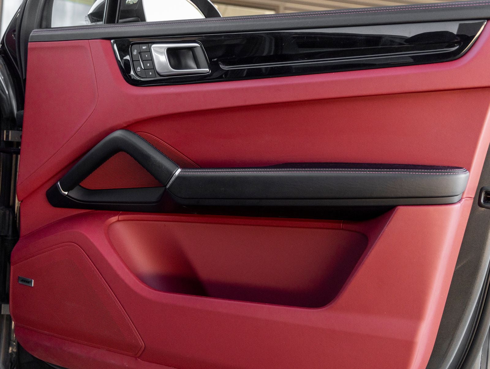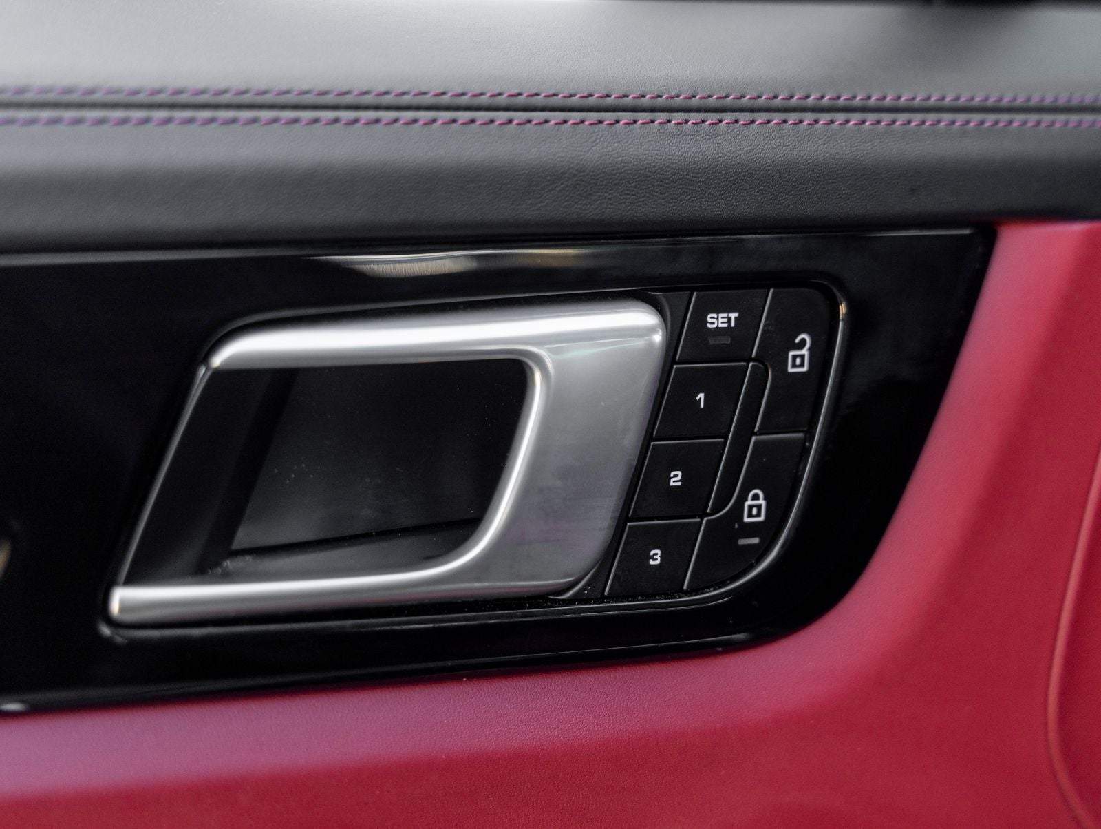 Step inside and the Black / Bordeaux Red Leather Interior greets you, exuding an atmosphere of modern Porsche luxury. The cabin is crafted for both comfort and engagement, featuring 14-Way Power Seats with Comfort Memory, Ambient Lighting, and the unmistakable Porsche Crest embossed on the headrests. Heated and ventilated front seats, a Heated Steering Wheel, and a Panoramic Roof System create an environment that blends driver-focused performance with refined comfort.