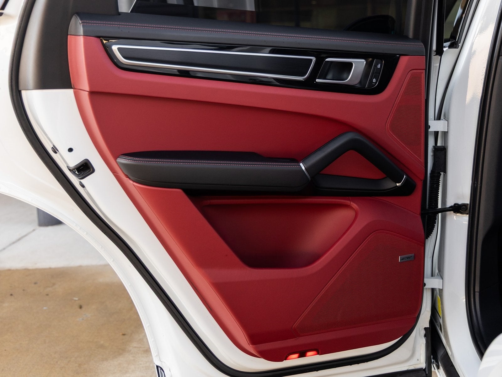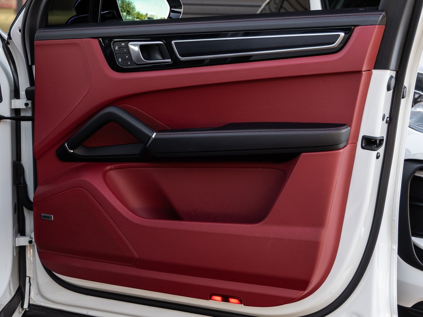 Step inside and the Leather Interior in Black/Bordeaux Red welcomes you with a refined yet sporty atmosphere. Power Seats (14-way) with Comfort Memory, Heated and Ventilated Front Seats, a Heated Steering Wheel, and 4-Zone Climate Control ensure comfort in every season. Premium touches like the Porsche Crest on Headrests (Front and Rear), Ambient Lighting, BOSE Surround Sound System, Head-Up Display, and Surround View elevate the cabin to a truly luxurious environment.