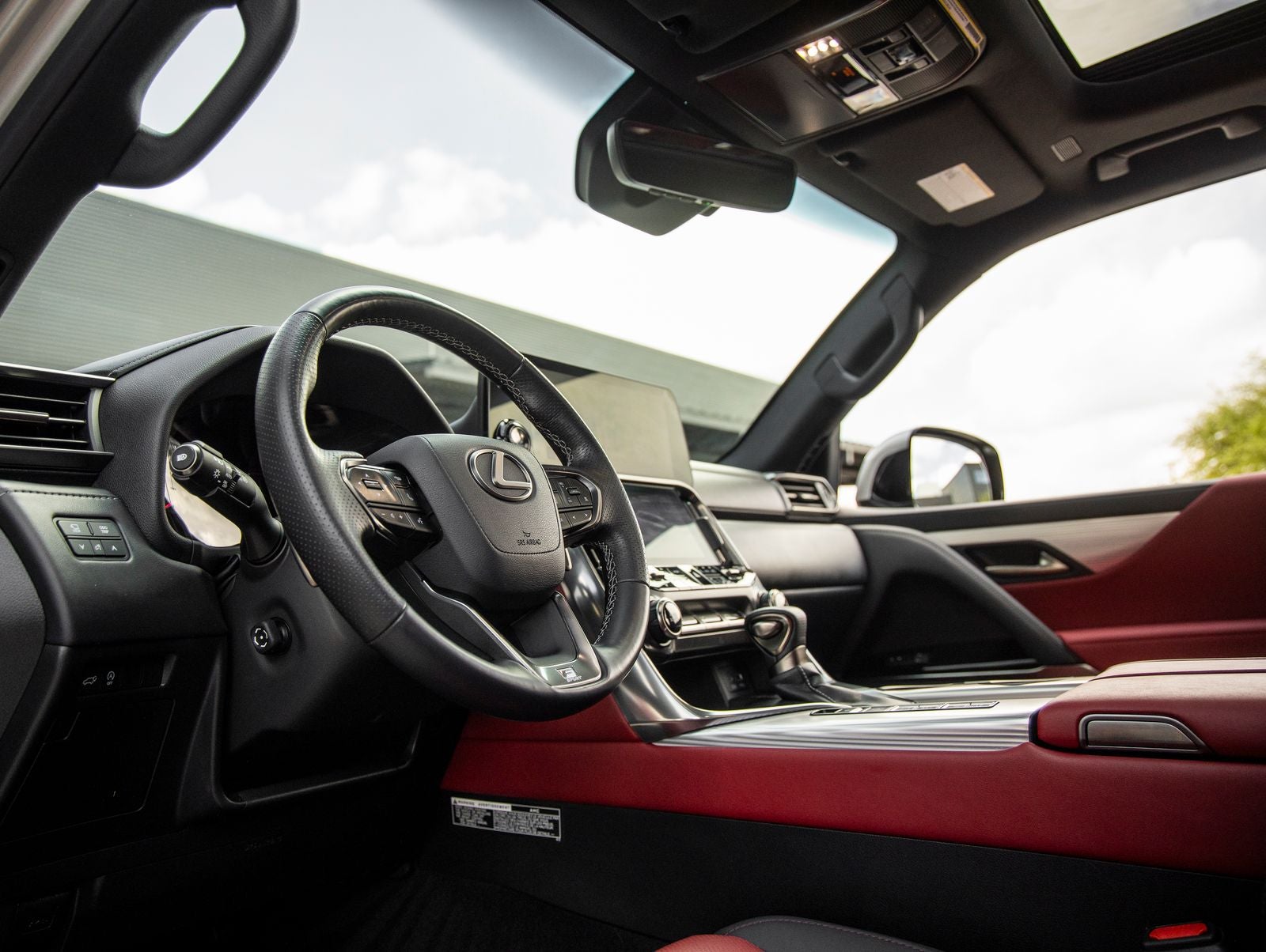 Step inside and the Black Leather interior greets you, exuding an air of luxury that only Lexus can deliver. The cabin is crafted with meticulous attention to detail, featuring premium materials, intuitive technology, and F SPORT-exclusive touches that elevate the driving experience. The leather-trimmed seating, performance-inspired steering wheel, and refined trim accents create a harmonious balance of comfort and sportiness.