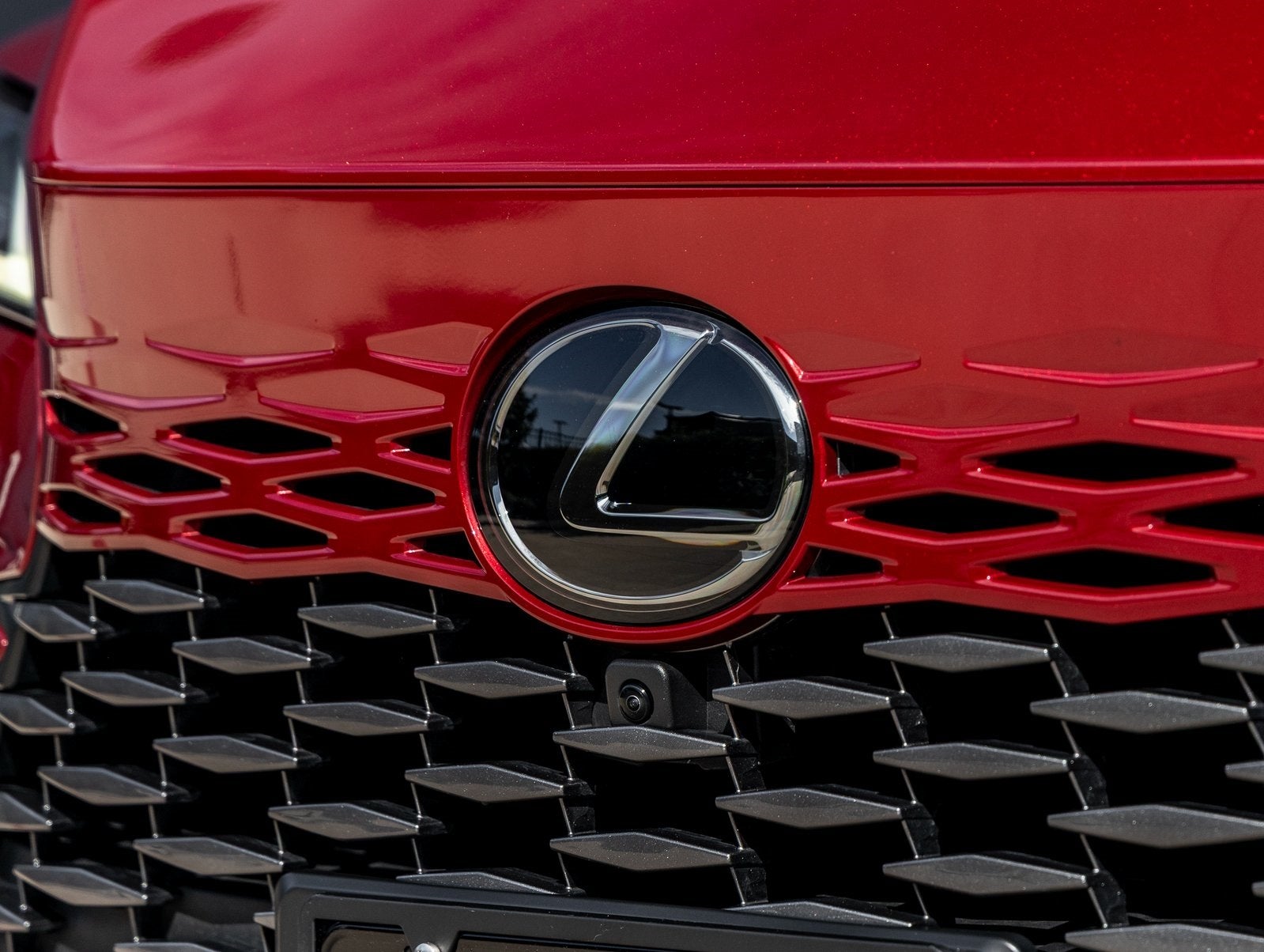 The RX 350 captivates at first glance with its bold spindle grille, sleek LED headlamps, and sculpted body lines. The Matador Red Mica finish adds a sense of elegance and presence, while subtle chrome accents and stylish alloy wheels complete the upscale design.