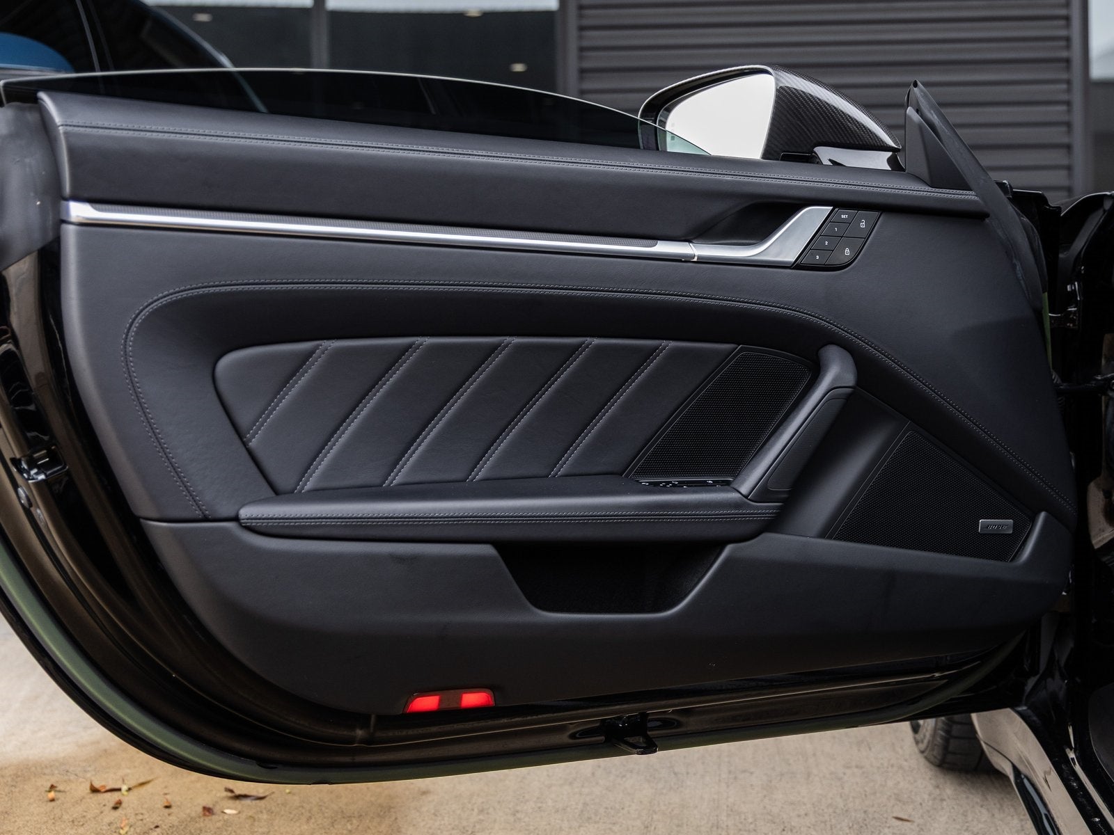 Step inside and the Leather Interior in Black welcomes you with refined craftsmanship. Ambient Lighting and an Ionizer enhance cabin comfort, while Ventilated Front Seats and the Heated GT Sport Steering Wheel with Matte Carbon Fiber trim deliver both luxury and performance-focused control. Illuminated Matte Carbon Fiber Door-Sill Guards and Under Door Puddle Light Projectors add exclusive finishing touches befitting a flagship 911.