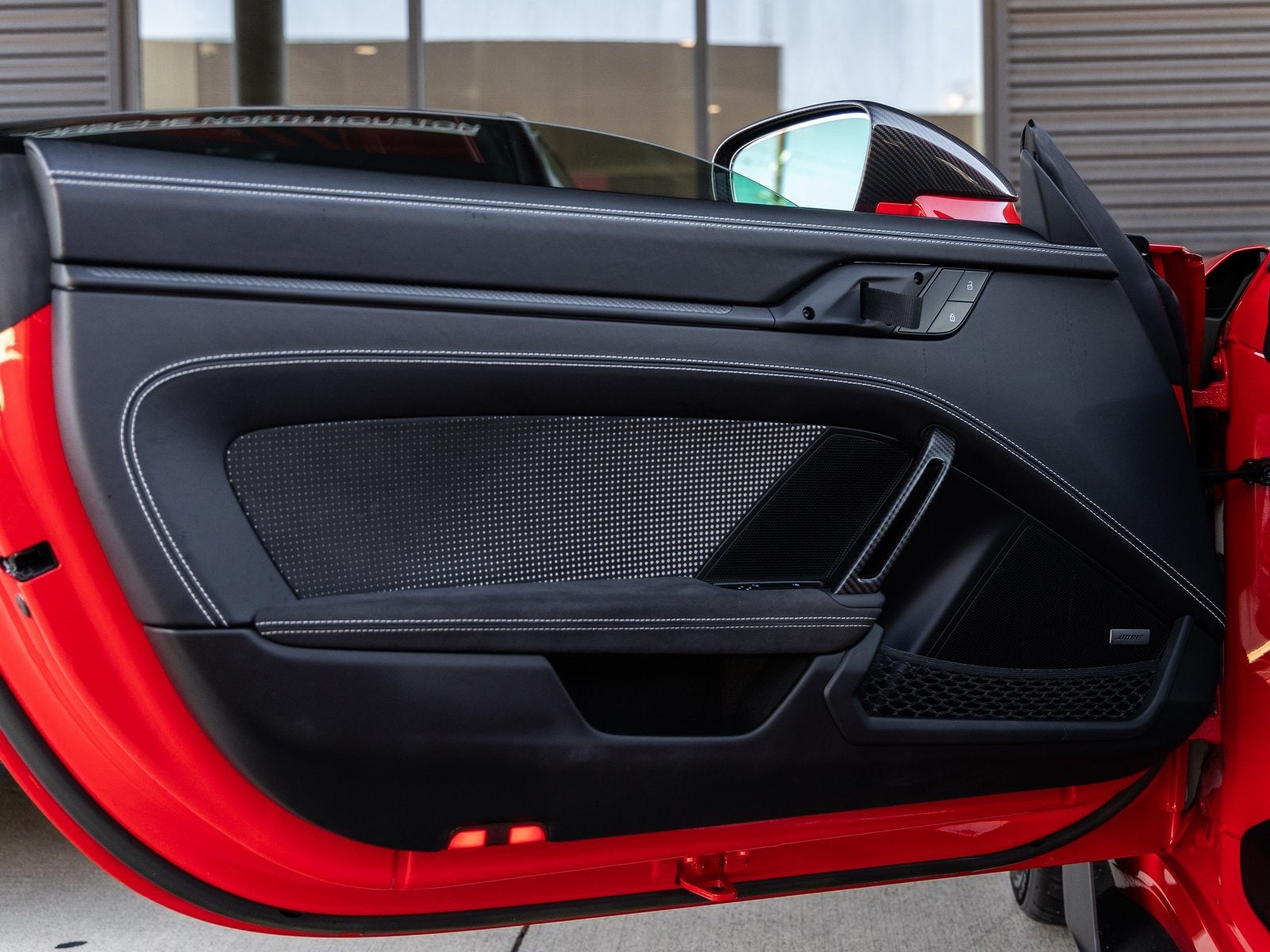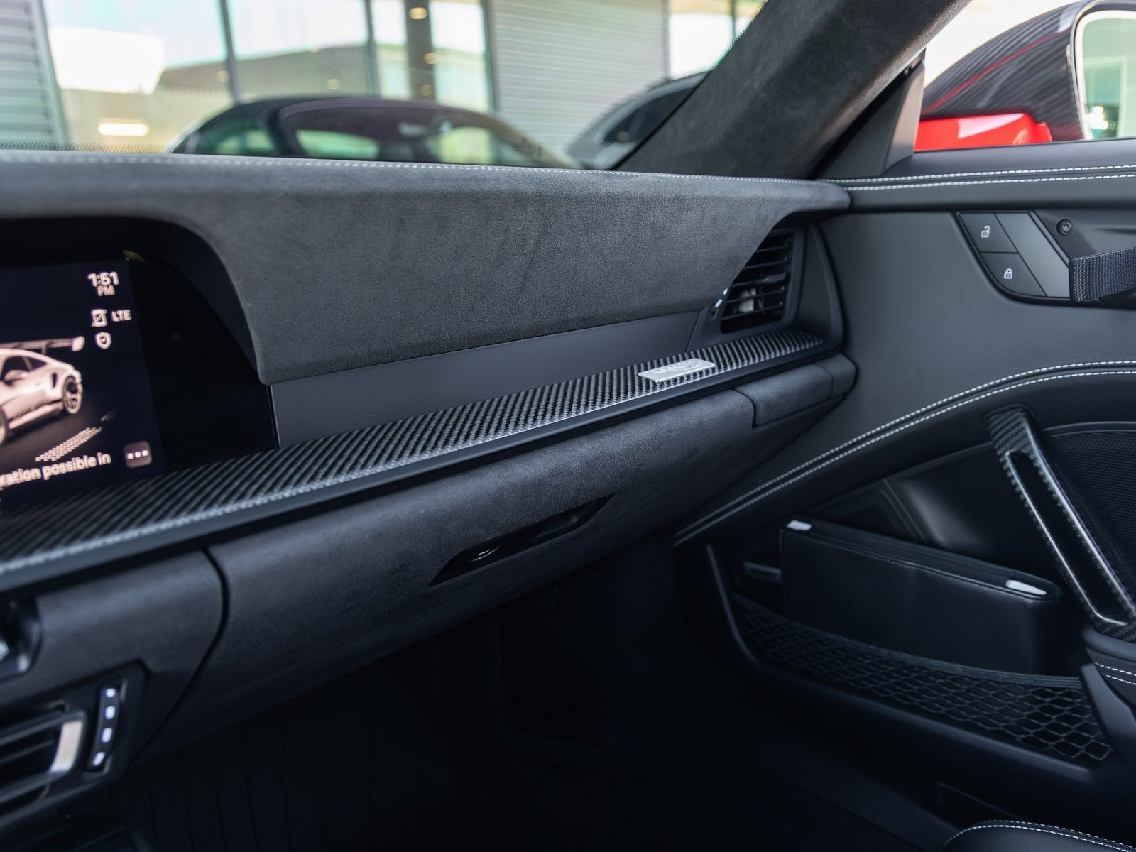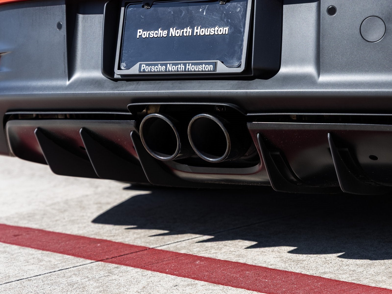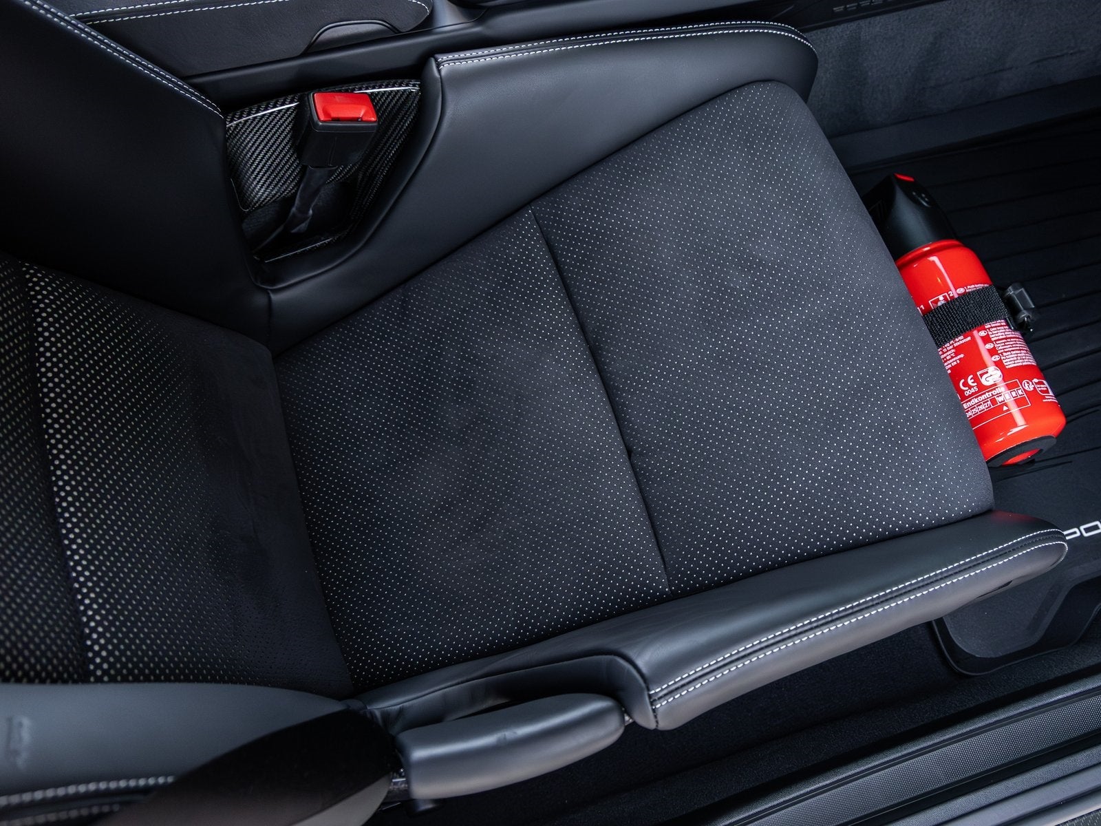 Step inside and the Leather/Race-Tex Interior in Black with GT Silver Stitching greets you, exuding an air of luxury that only Porsche can deliver. The Steering Wheel and Gear Lever in Black Leather, Central Tachometer in Racing Yellow, and Aluminum Pedals and Footrest punctuate the cabin with a motorsport-inspired finish. Door Pull Loops in Black, a fire extinguisher, and ambient lighting blend form and function with unmistakable Porsche flair.