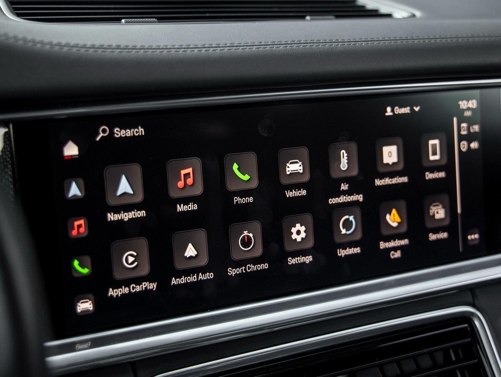 - Radio: Porsche Communication Management (PCM) -inc: online navigation module, mobile phone preparation, audio interfaces (Bluetooth®, USB, aux-in), Connect Plus, telephone module, wireless internet access, Porsche Car Connect (carfinder, remote vehicle status, remote services, Porsche Vehicle Tracking System (PVTS)), hi-fi sound system w/10 speakers and a total output of 150 watts, smartphone compartment w/wireless charging, wireless Apple CarPlay, wired Android Auto, SiriusXM w/3-month platinum plan trial subscription, HD Radio receiver and voice control