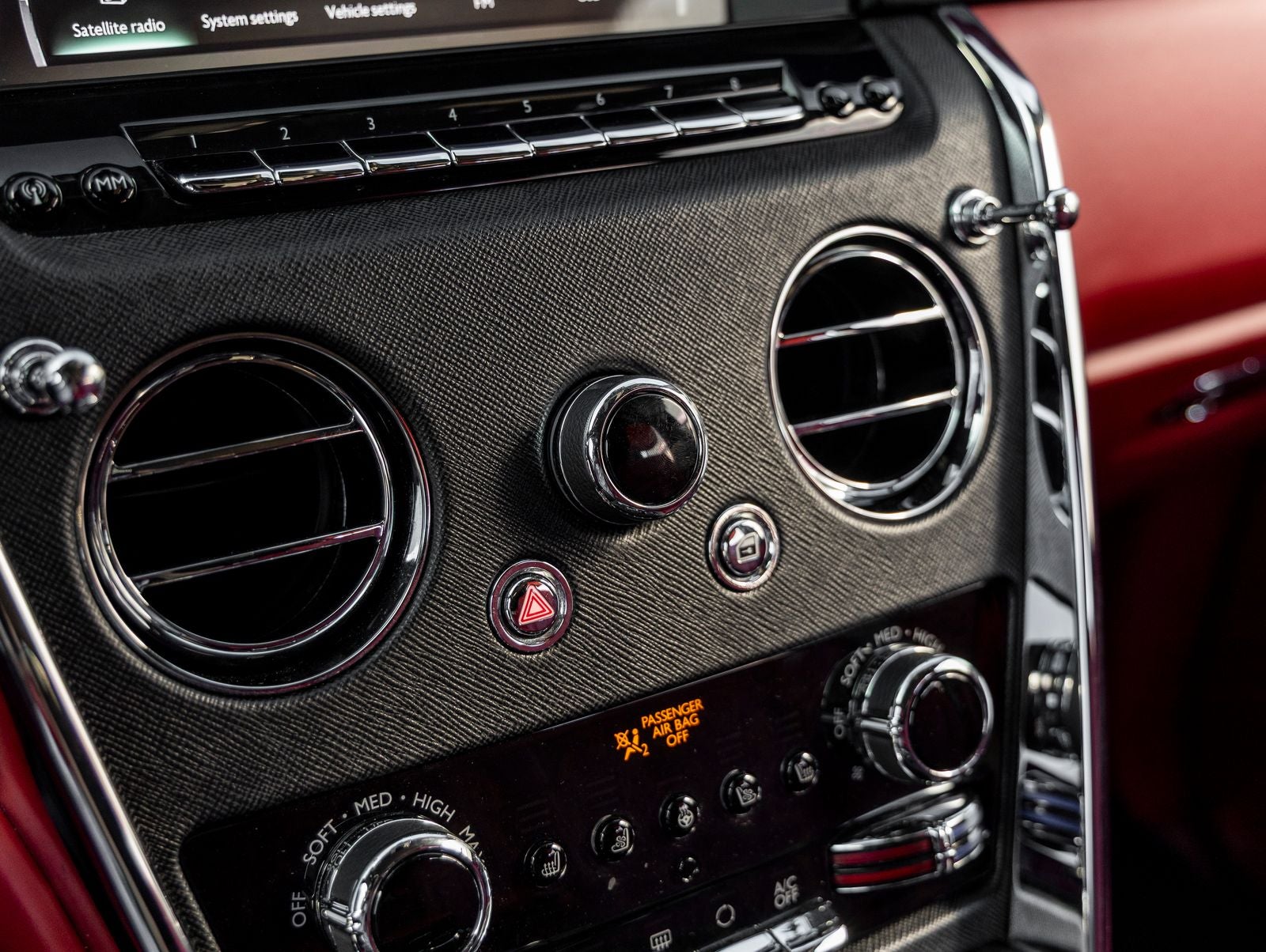 Piano Black Veneer: Elegant high-gloss wood trim that enhances the Cullinans sophisticated cabin atmosphere.