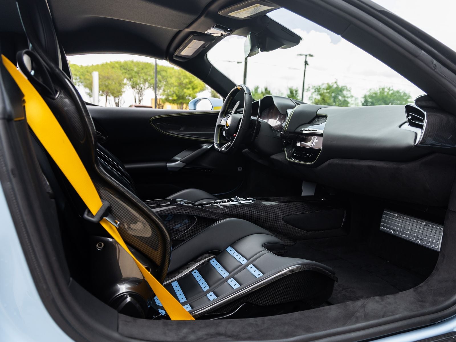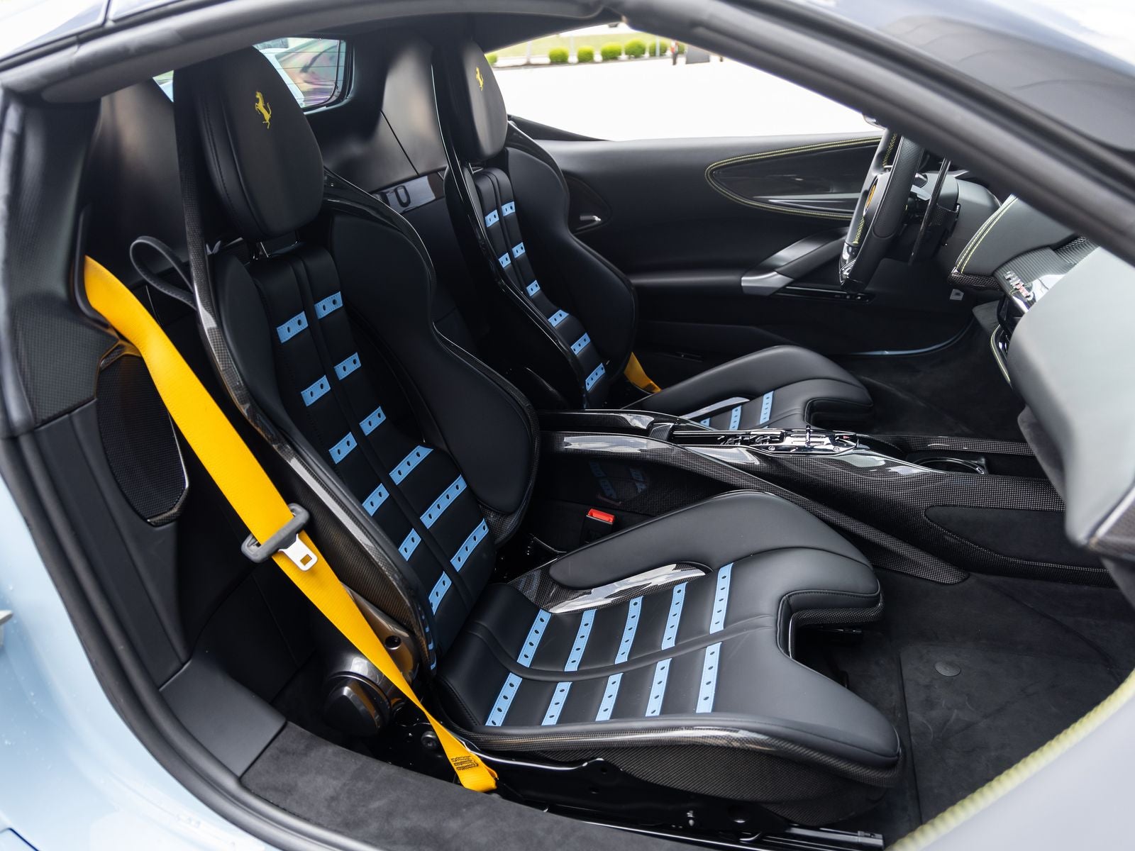 Step inside and the Nero interior envelops you in a driver-centric cockpit crafted with precision and luxury. Daytona Racing Seats in a larger size configuration, Carbon Fiber Driver Zone with LED shift lights, and extensive carbon fiber trim throughout create an immersive performance environment. Yellow accents including Seat Belts and Cavallino stitching, along with Premium Hi-Fi System and Apple CarPlay integration, blend cutting-edge technology with bespoke Italian design.