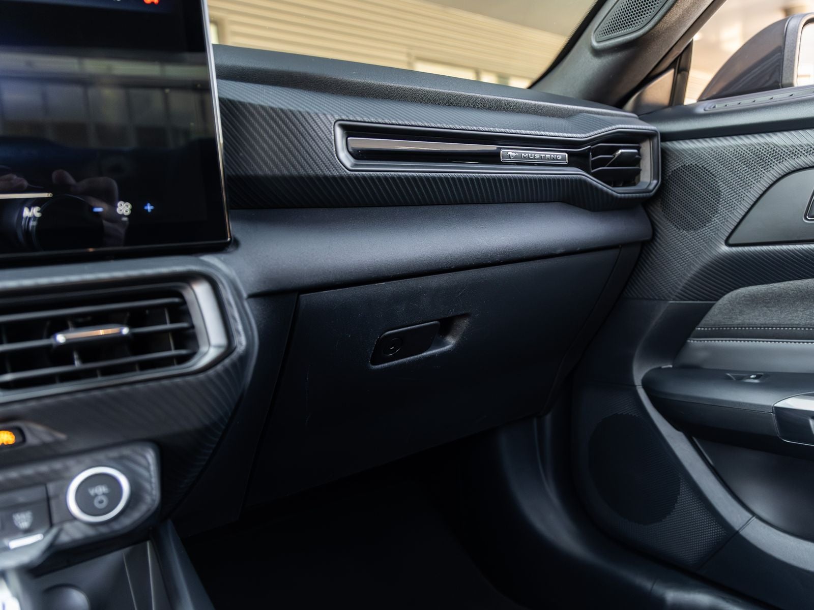 Step inside and the Black Onyx cloth interior greets you, offering a driver-focused cockpit infused with modern technology. A 12.4 digital instrument cluster and 13.2 center touchscreen provide a seamless interface, while the flat-bottom leather-wrapped steering wheel and sport seating ensure an engaging driving experience. With features like SYNC4, selectable drive modes, and FordPass Connect, this Mustang blends classic performance with contemporary convenience.