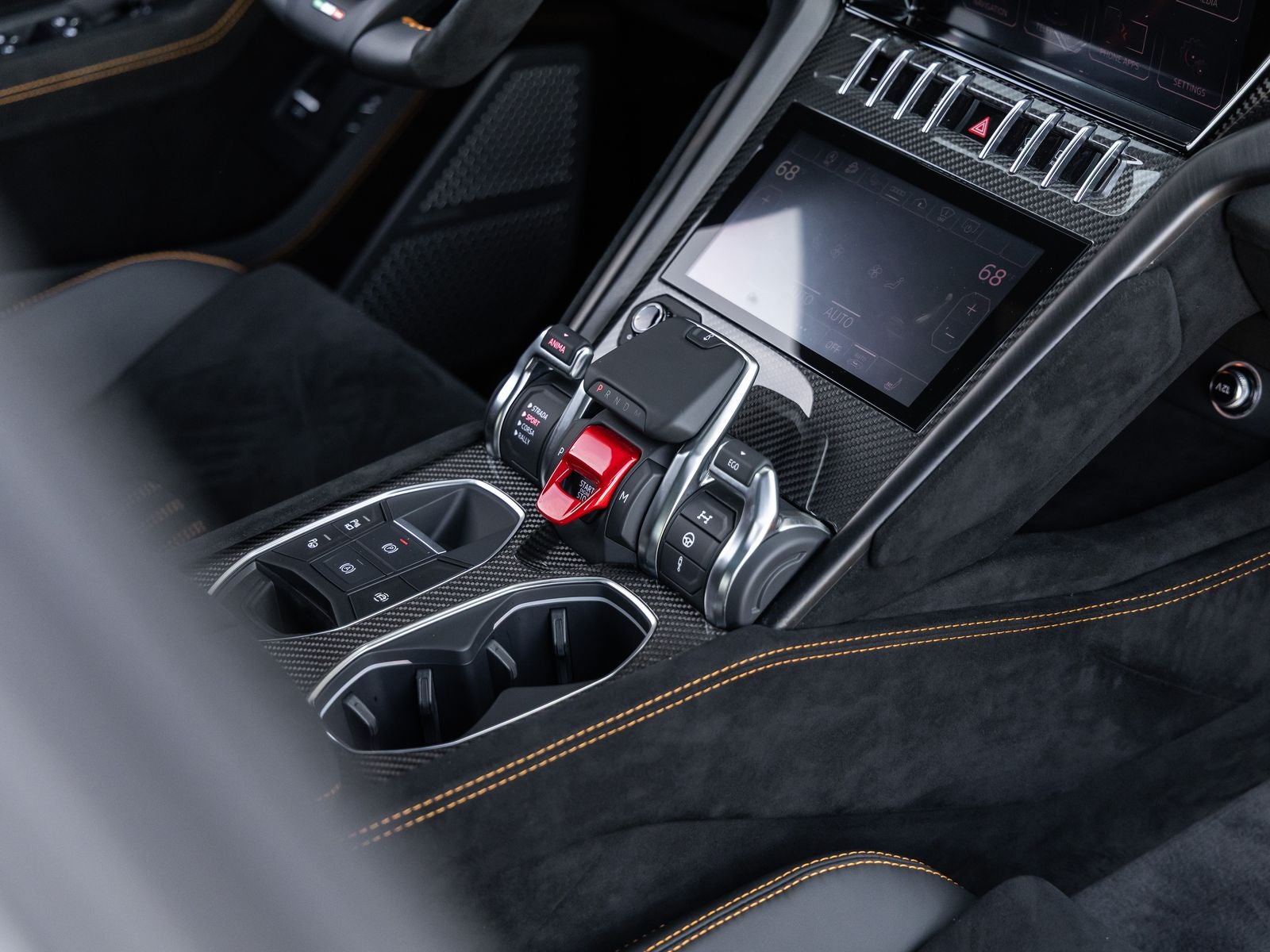 Step inside and the Nero Cosmus interior greets you, exuding an air of luxury that only Lamborghini can deliver. Optional contrast stitching and Arancio seat belts punctuate the cabin with vibrant energy, while premium materials and advanced craftsmanship create a driver-focused yet refined environment. The Ambient Light Package and advanced infotainment system elevate both comfort and connectivity.