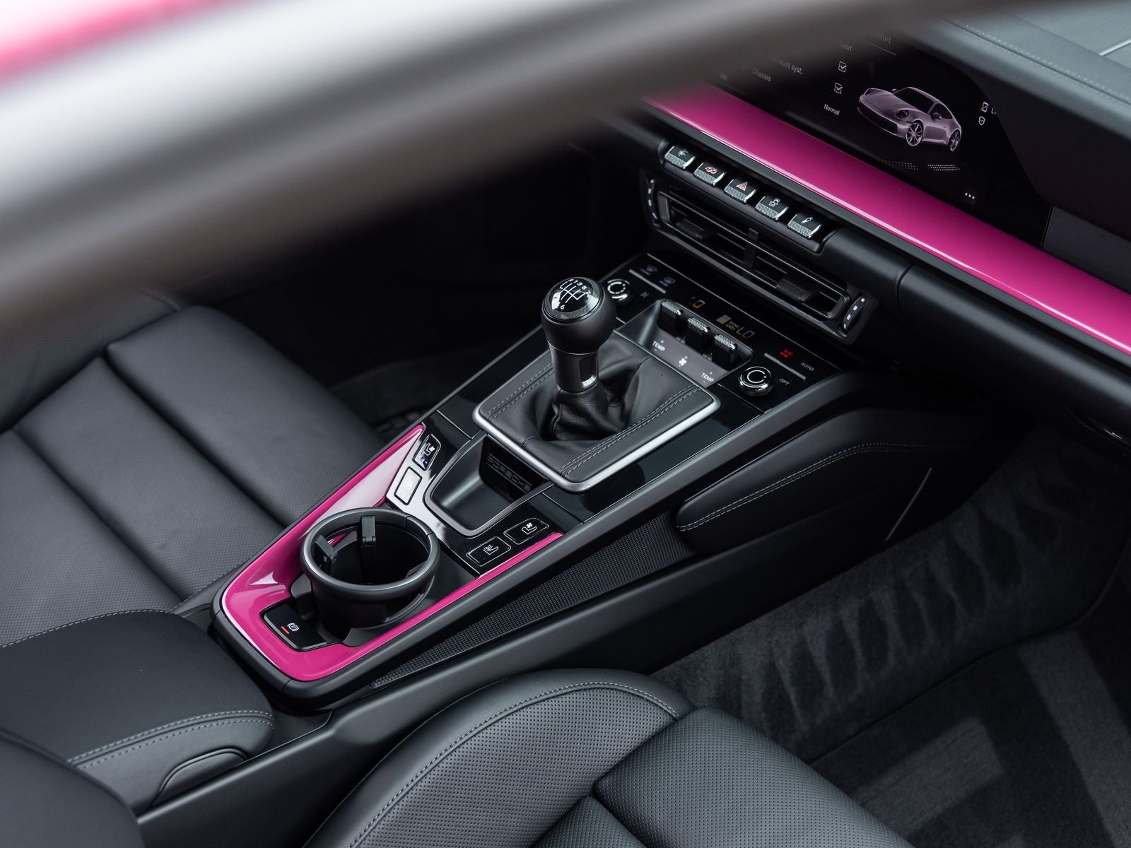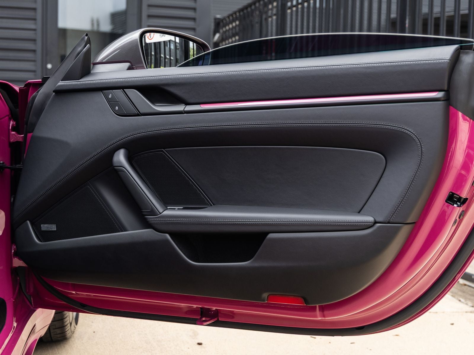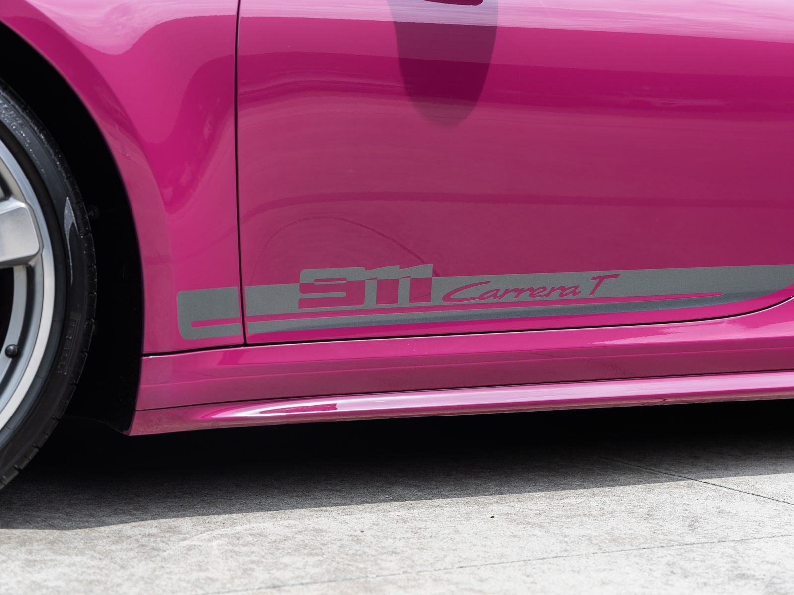 The 911 Carrera T stands as a purists dream, its Ruby Star Neo exterior not just a color, but a bold expression of individuality and motorsport spirit. Adorned with 20/21-inch Carrera Exclusive Design Wheels and the aggressive Aerokit, it presents a striking and aerodynamic stance. The SportDesign Side Skirts and Exclusive Design Tailpipes in Silver further enhance its dynamic appearance, while Porsche Dynamic Light System Plus (PDLS+) ensures precision visibility.