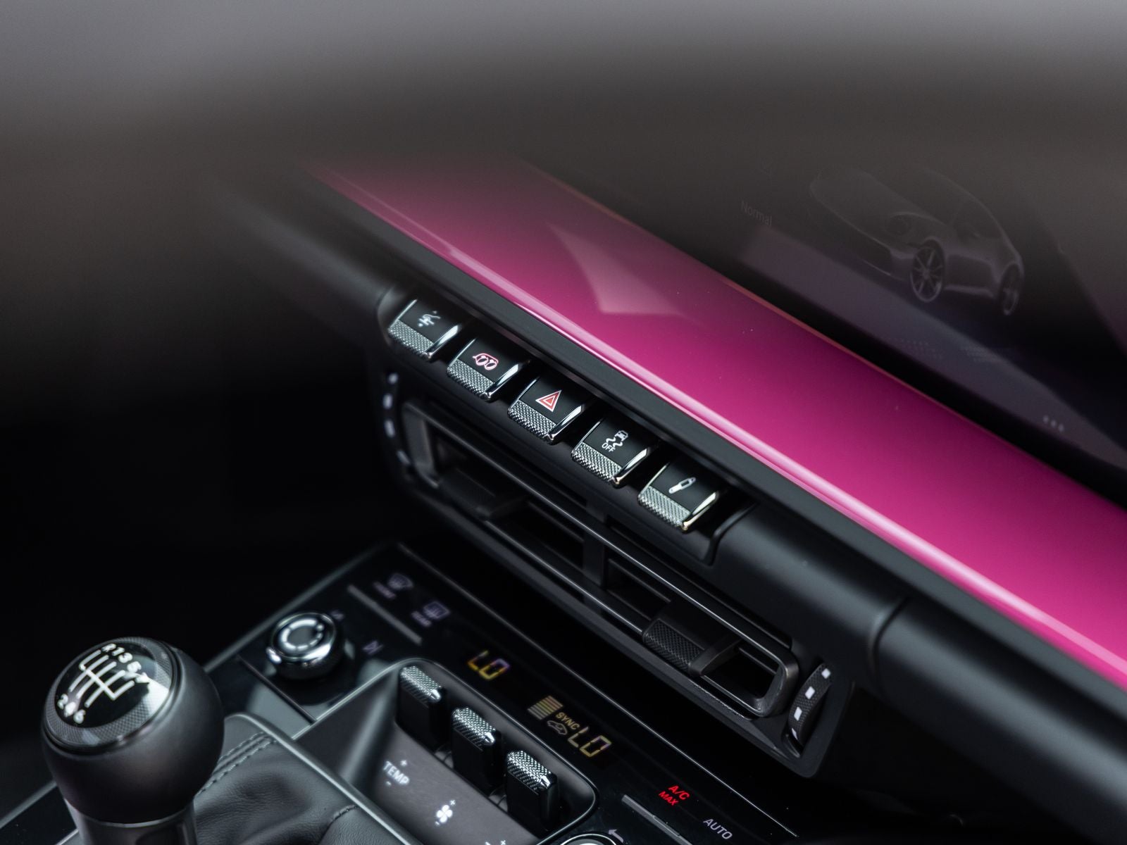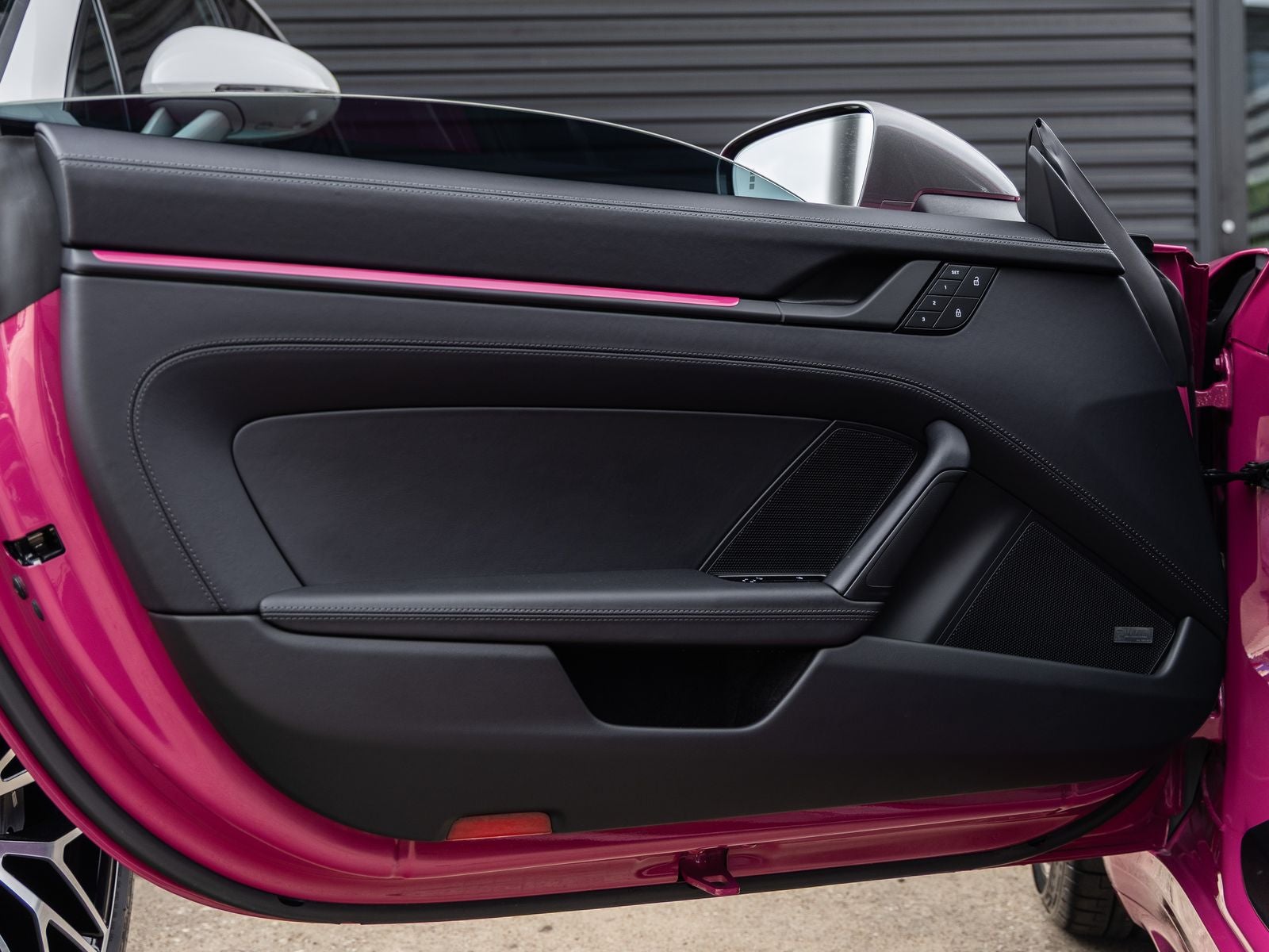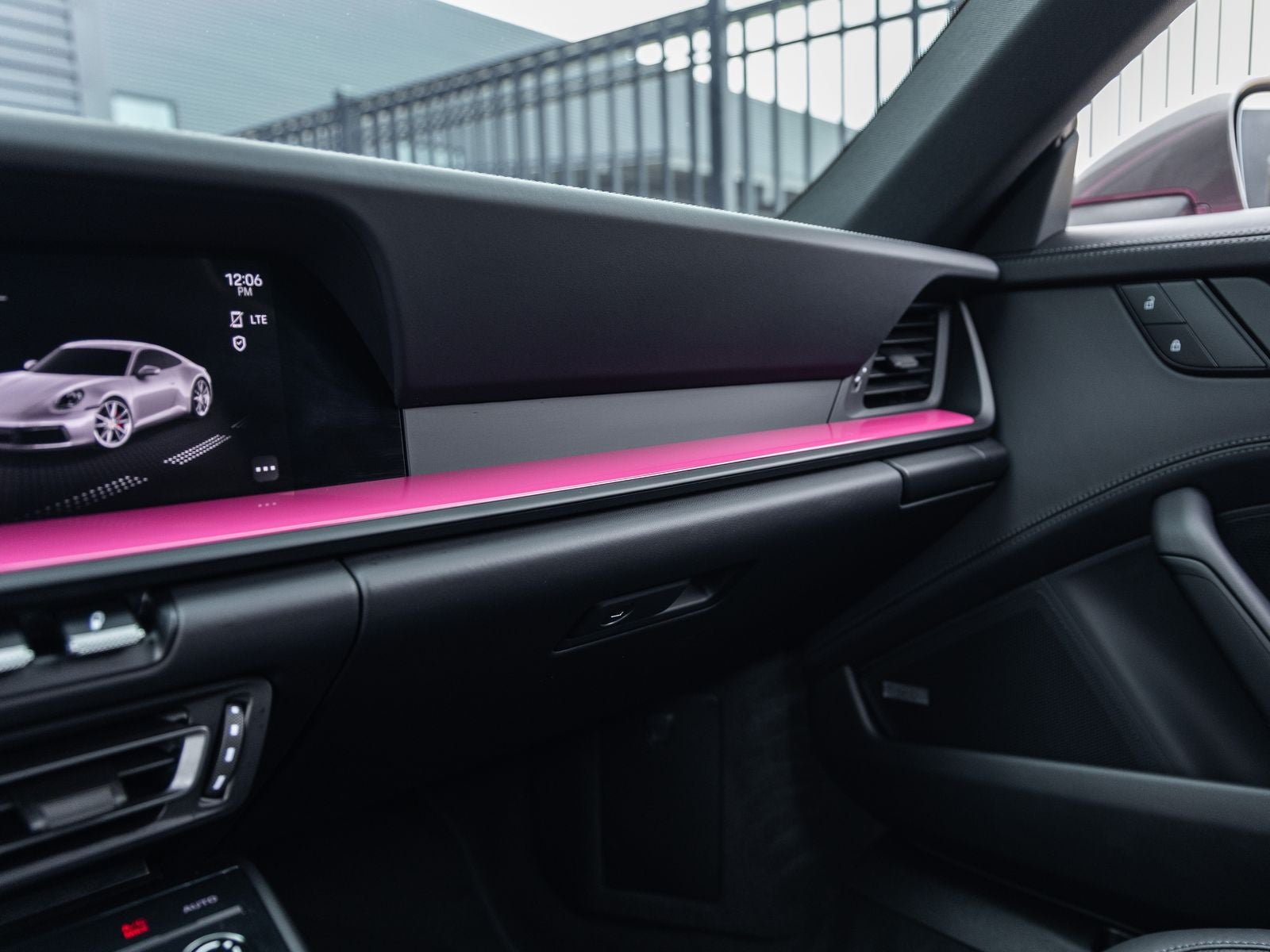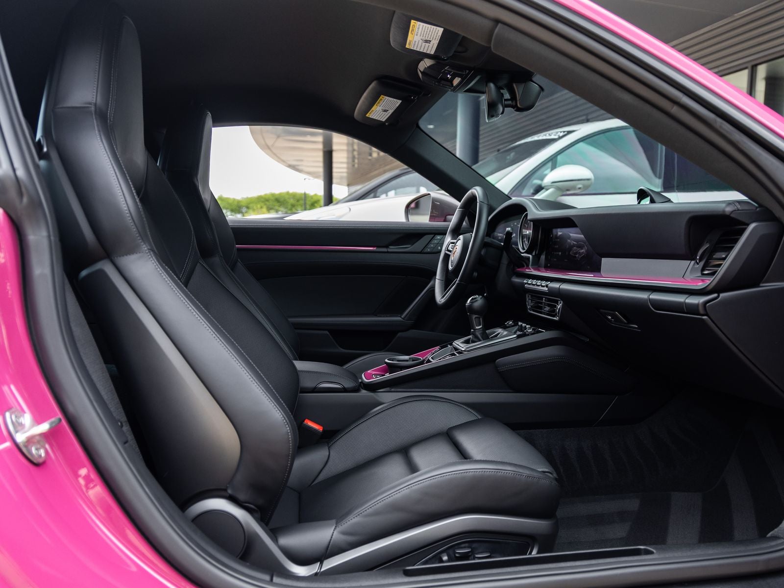 The 911 Carrera T stands as a purists dream, its Ruby Star Neo exterior not just a color, but a bold expression of individuality and motorsport spirit. Adorned with 20/21-inch Carrera Exclusive Design Wheels and the aggressive Aerokit, it presents a striking and aerodynamic stance. The SportDesign Side Skirts and Exclusive Design Tailpipes in Silver further enhance its dynamic appearance, while Porsche Dynamic Light System Plus (PDLS+) ensures precision visibility.