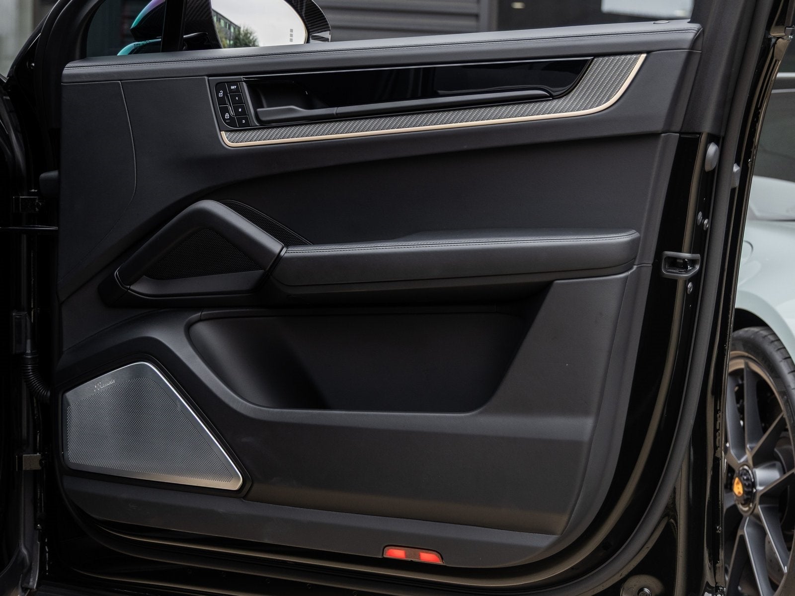 Step inside and the Leather Interior in Black greets you, exuding an air of luxury that only Porsche can deliver. Adaptive Sport Seats Plus (18-way) with Memory Package ensure exceptional comfort, while the Heated GT Sport Steering Wheel in Leather with Carbon Fiber Trim adds a focused touch. Matte Carbon Fiber Interior Trim with Neodyme accents, Carbon Fiber Floor Mats with Leather Edging, and Illuminated Door-Sill Guards reflect bespoke craftsmanship. Ventilated Seats (Front), 4-Zone Climate Control, and the Burmester 3D High-End Surround Sound System elevate every journey.