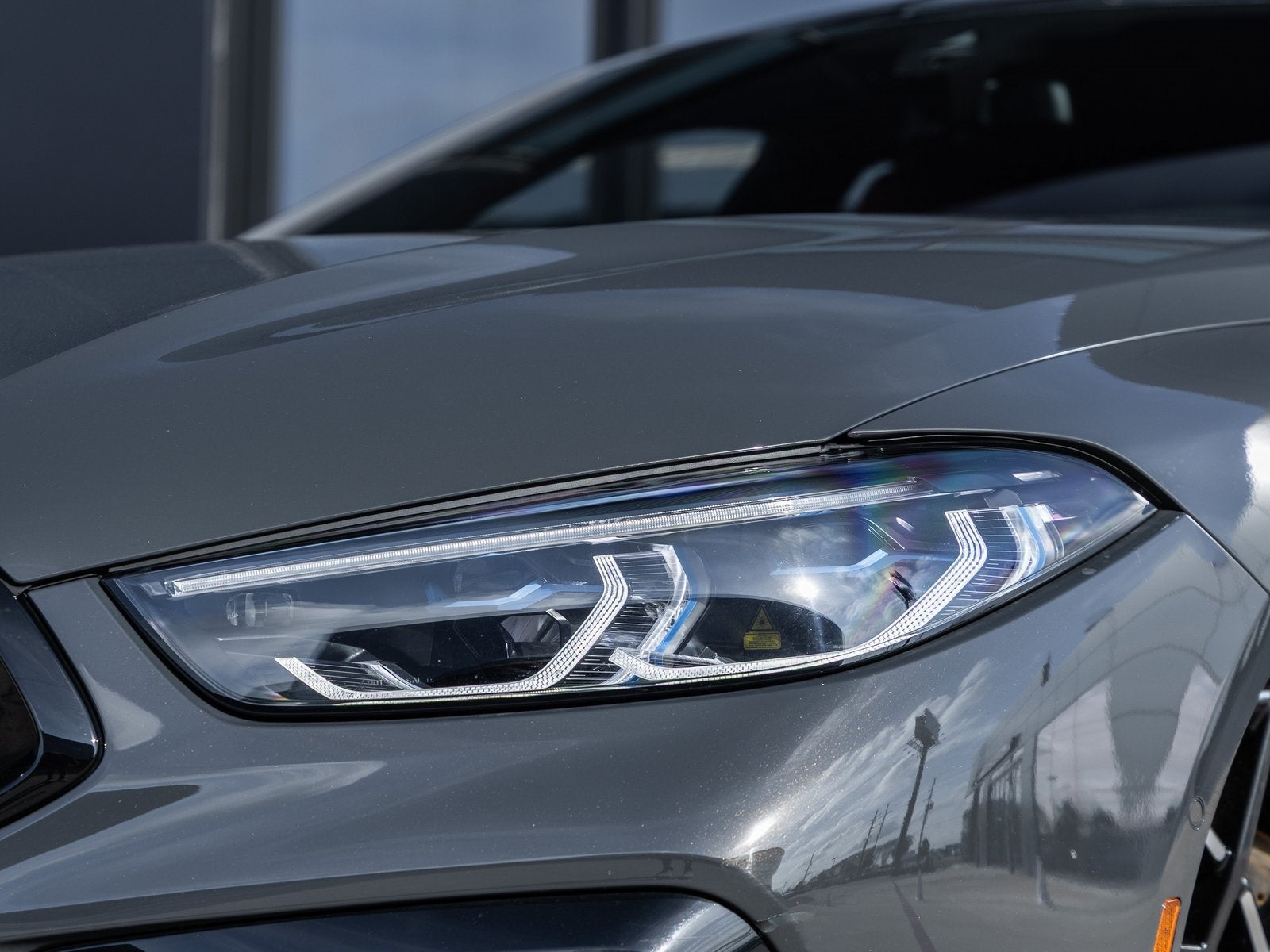 The M8 Competition Gran Coupe stands as a beacon of design and performance, its Dravit Grey Metallic exterior not just a color, but a bold expression of executive athleticism and refined aggression. Adorned with 20 M Star-Spoke Bicolor 813M Wheels and Icon Adaptive LED Headlights with Laserlight, it presents a commanding and unmistakable presence. The Competition Package and Extended Shadowline Trim enhance its dynamic character, while the M Carbon Roof and M Rear Spoiler underscore its motorsport pedigree and aerodynamic precision.