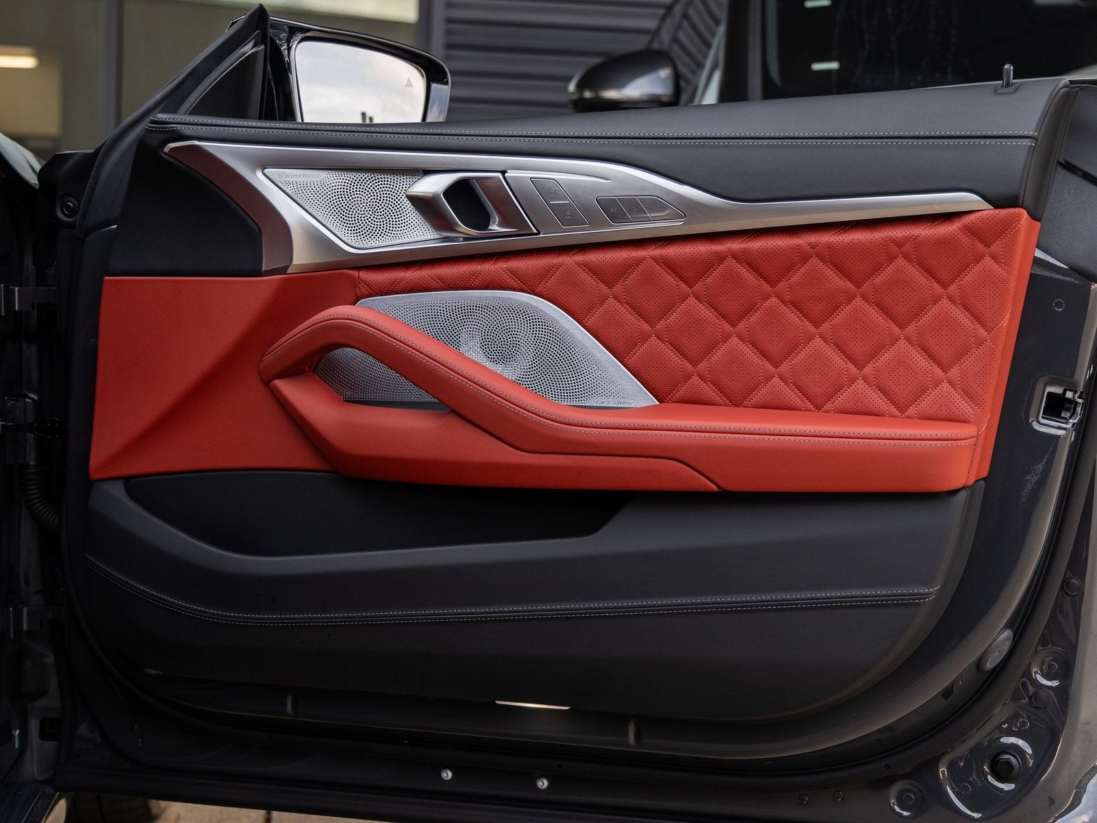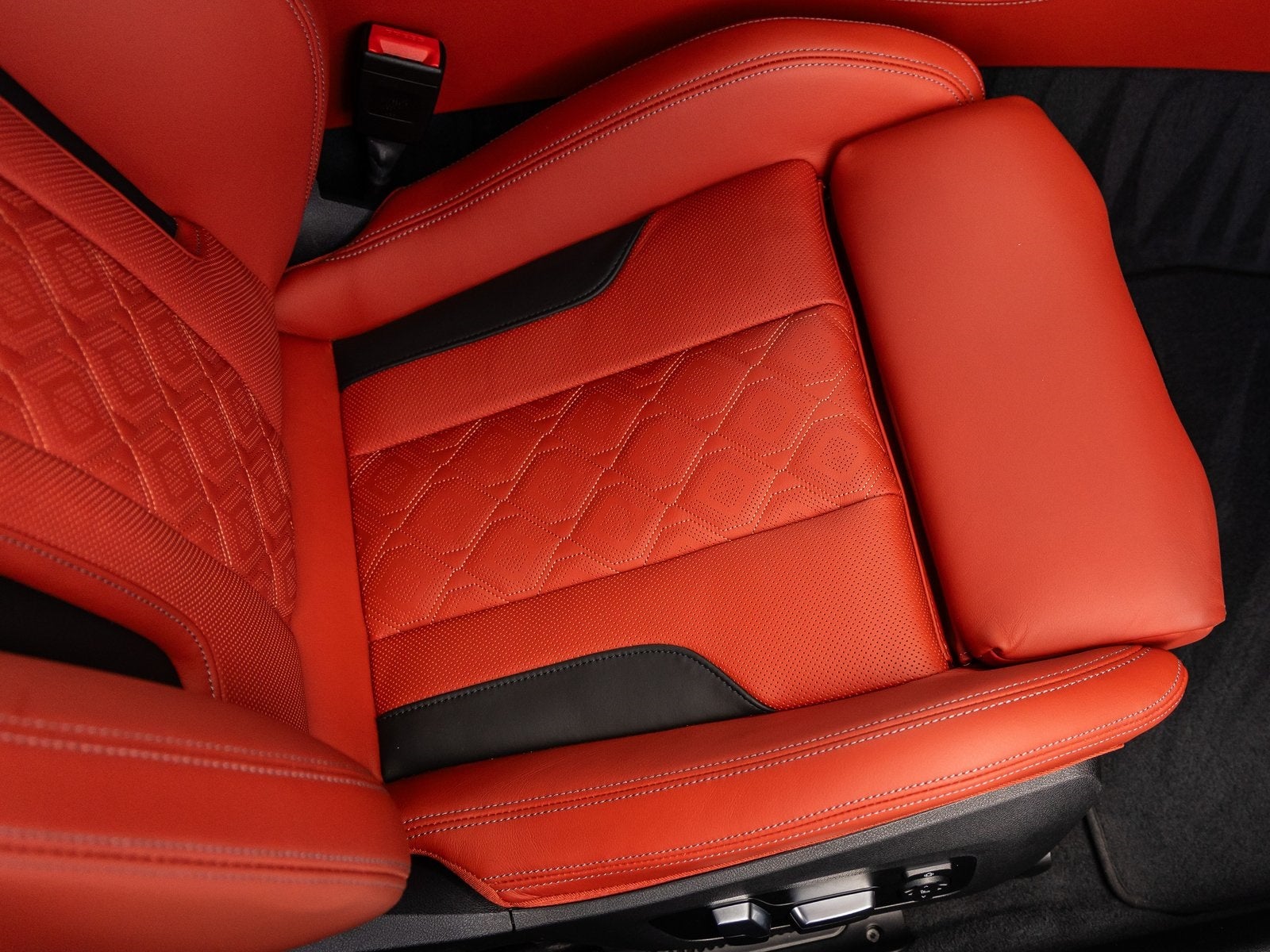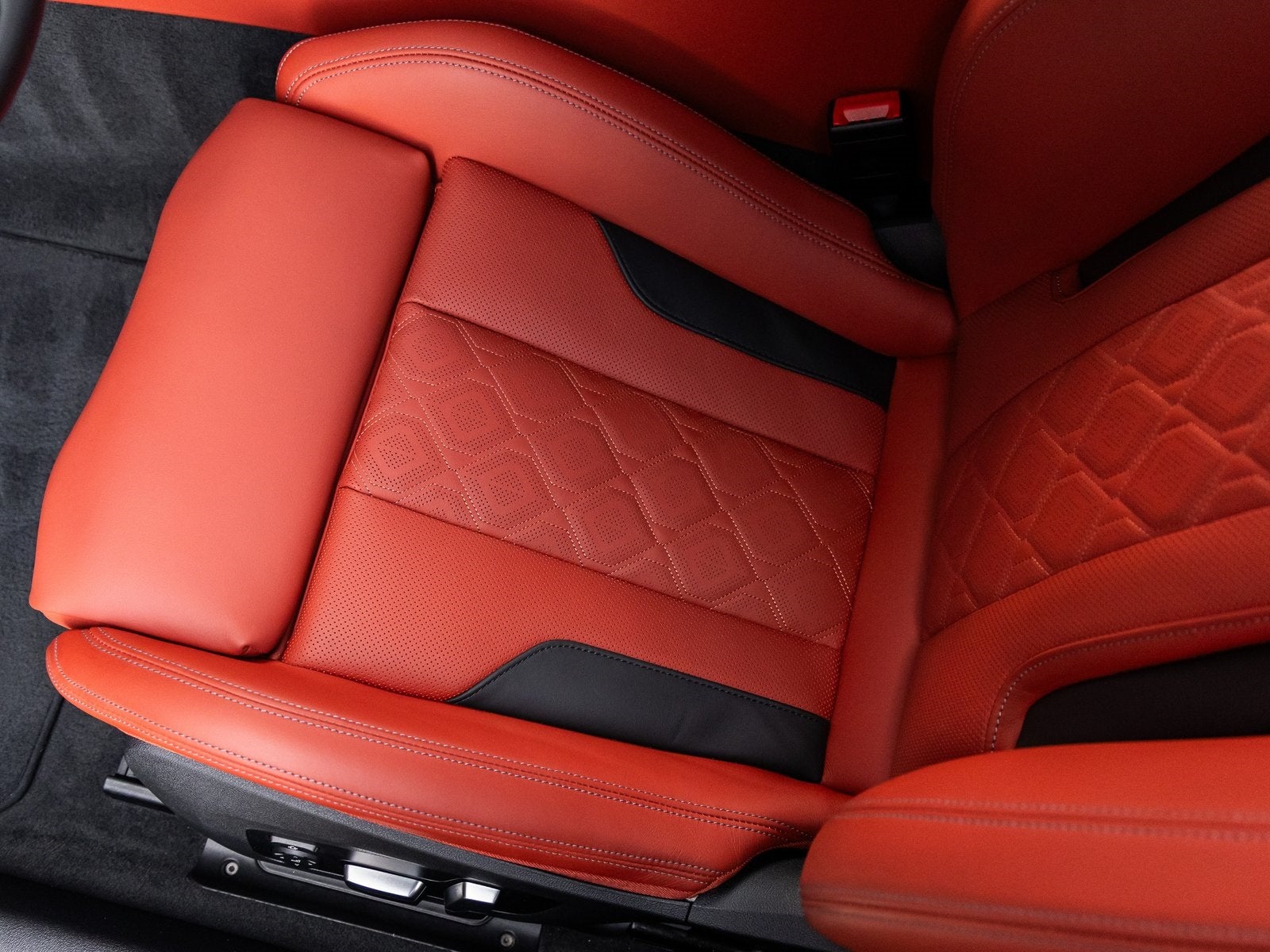 Step inside and the Sakhir Orange/Black Full Leather interior greets you, exuding an air of bespoke craftsmanship and performance-focused luxury. The M Sport Seats with illuminated M logos, Anthracite Alcantara Headliner, and Carbon Fiber Trim create an environment that is both driver-centric and indulgent. Heated and Ventilated Front Seats, Heated Rear Seats, 4-Zone Automatic Climate Control, and Soft-Close Automatic Doors elevate comfort to flagship standards, while the Bowers & Wilkins Diamond Surround Sound System ensures a concert-hall experience on every drive.