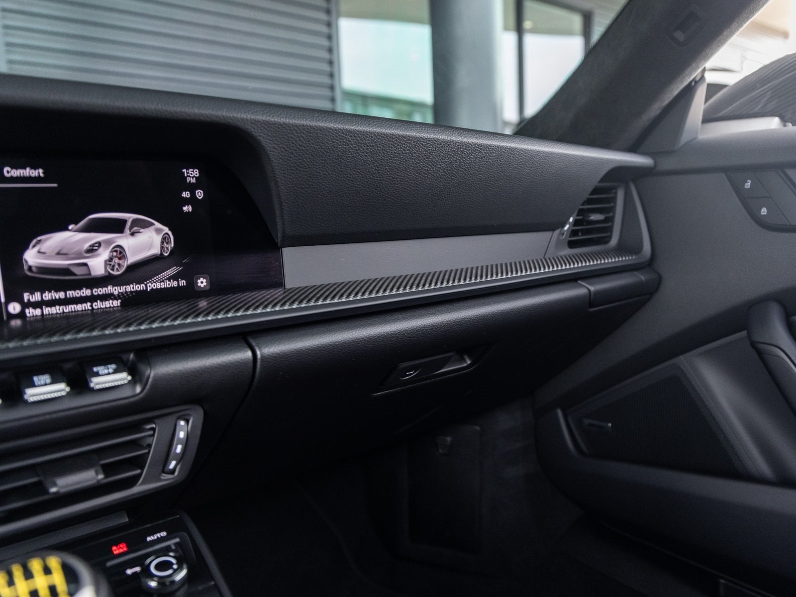 Step inside and the Standard Interior in Black with Fabric Seat Centers welcomes you with focused luxury. Adaptive Sport Seats Plus (18-way) provide exceptional comfort and support, while the Roof Lining and Upper Interior Mirror Panel in Race-Tex create a driver-centric atmosphere. Matte Carbon Fiber Interior Trim, Illuminated Door-Sill Guards in Matte Carbon Fiber, and the Center Console Lid with Porsche Crest highlight the bespoke craftsmanship throughout the cabin. Thoughtful details such as Aluminum Pedals, Ambient Lighting, and the BOSE Surround Sound System further elevate the experience.