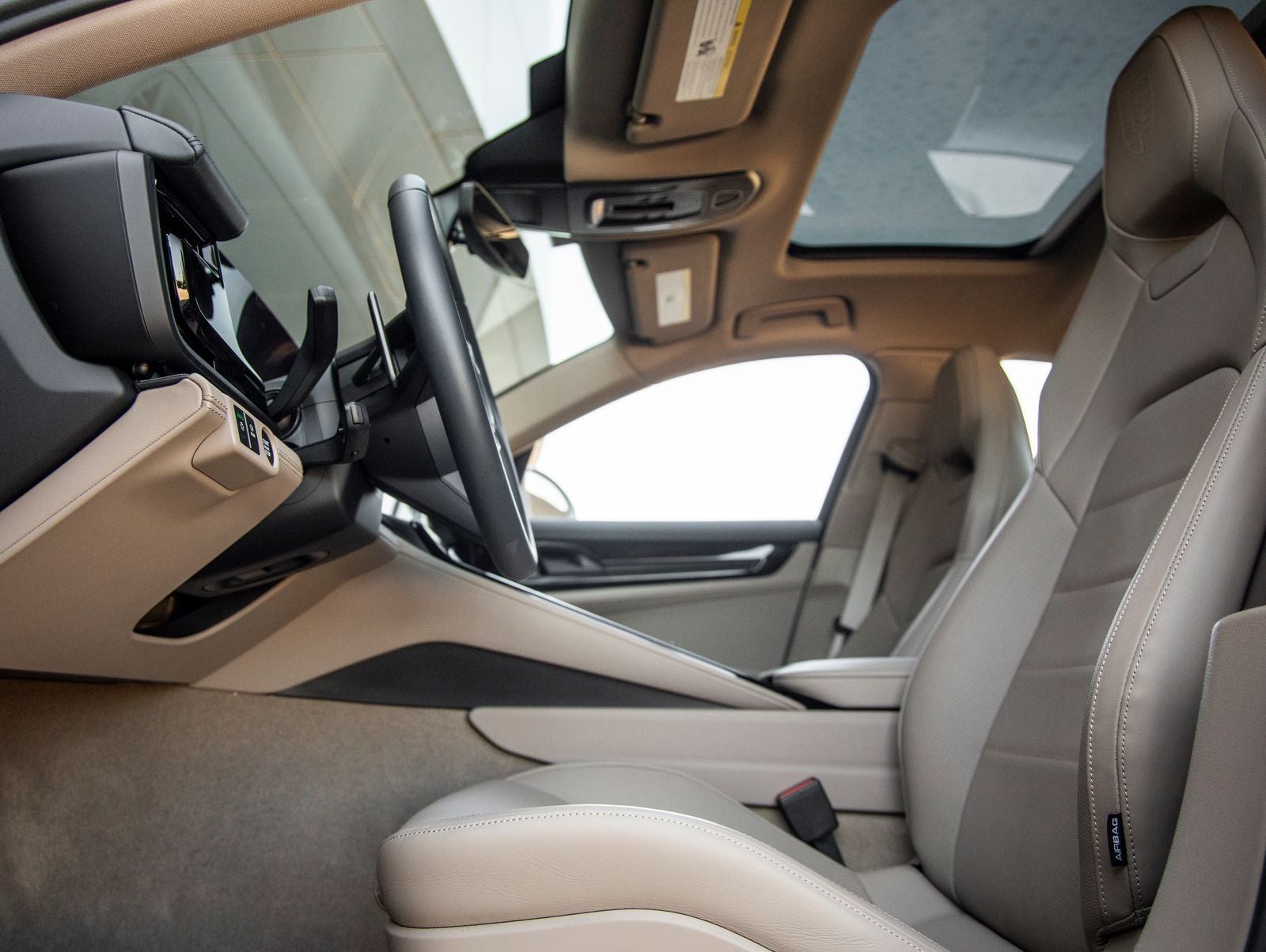 Step inside and the Leather Interior in Dark Night Blue/Limestone Beige greets you, exuding an air of luxury that only Porsche can deliver. Heated and ventilated front seats, along with heated rear seats and 4-zone climate control, ensure exceptional comfort for all passengers. The BOSE Surround Sound System delivers an immersive audio experience, while Porsche Crests on the headrests and a refined cabin layout speak to a bespoke level of craftsmanship.