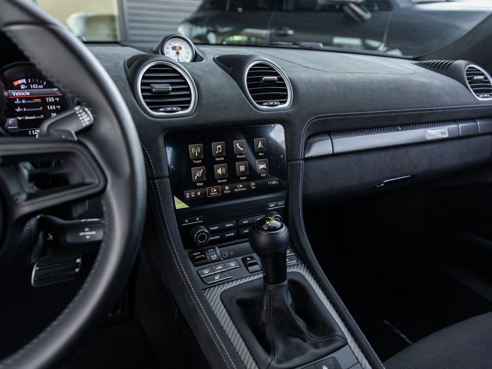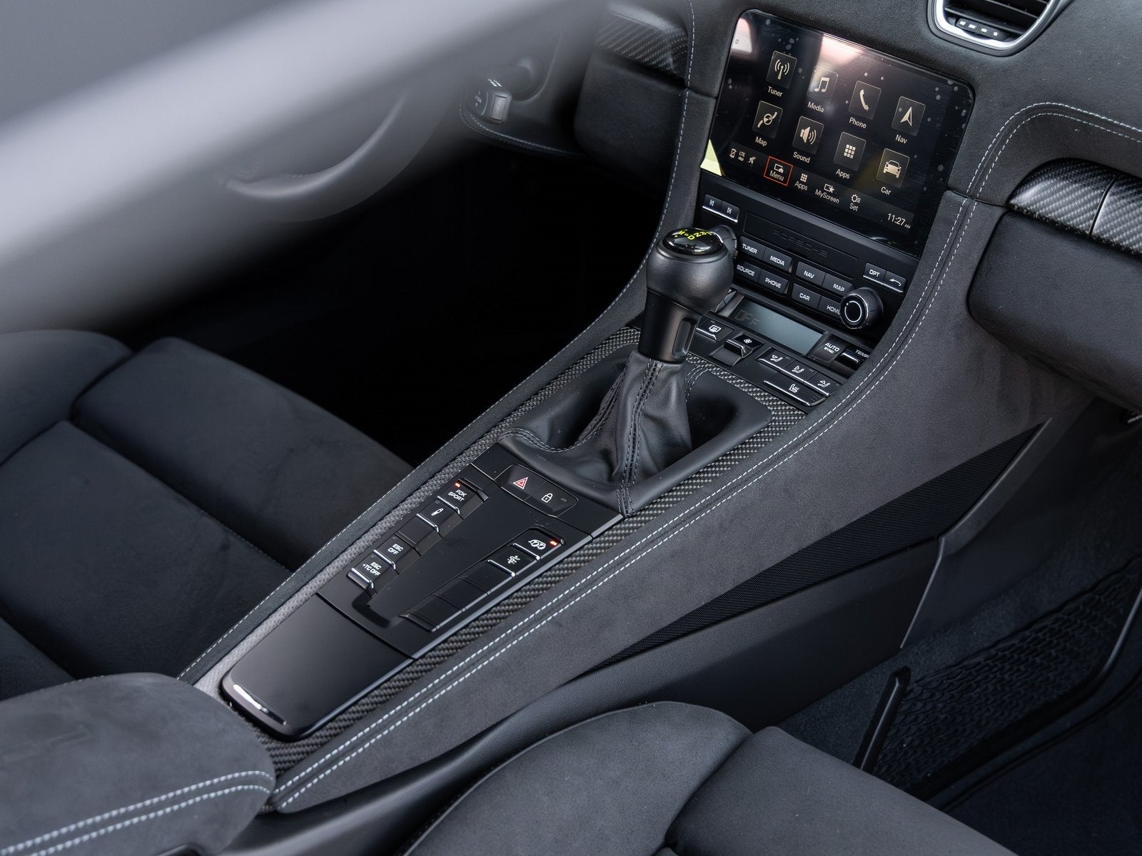 • Storage Compartment Lid in Race-Tex with PORSCHE Logo: Subtle luxury with motorsport influence.