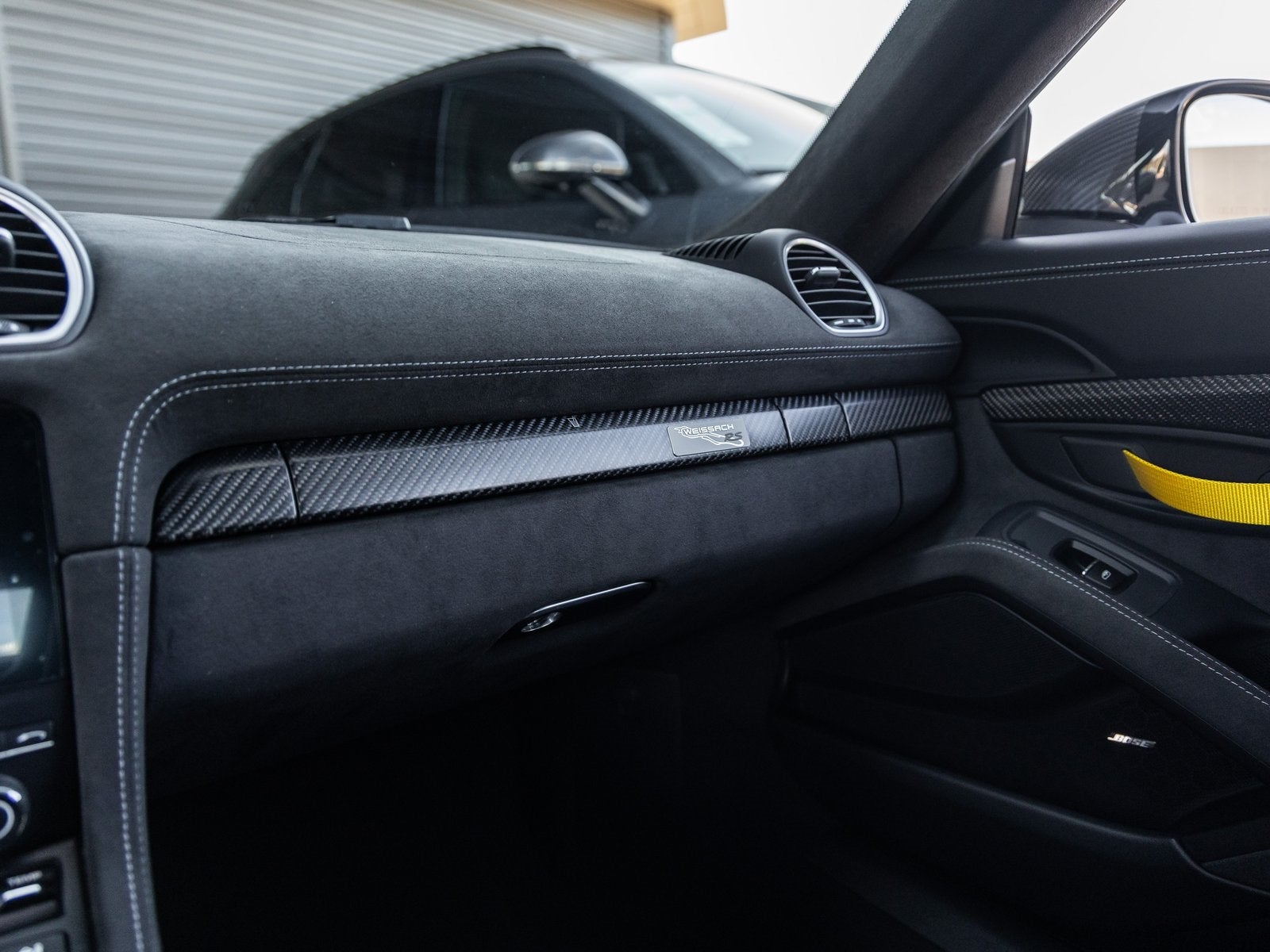 Inside, the Leather/Race-Tex Interior in Black with Arctic Grey Stitching delivers a focused yet luxurious cockpit. Racing Yellow Seat Belts and Door Pull Loops add bold contrast, while the Steering Column Casing in Leather and Carbon Fiber Illuminated Door-Sill Guards highlight attention to detail. Enjoy added comfort and tech with Heated Adaptive Sport Seats Plus, BOSE Surround Sound, Auto-Dimming Mirrors with Rain Sensor, and the Chrono Package with White Stopwatch and Instrument Dials.