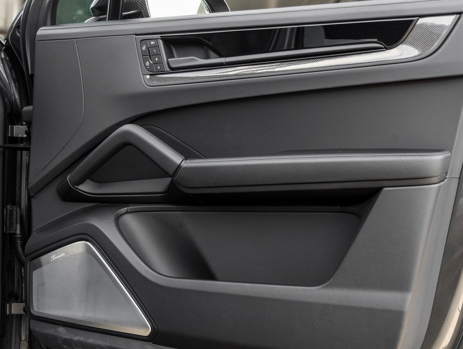 The Cayenne Turbo GT asserts itself with a bold and athletic presence, featuring the striking Quartzite Grey Metallic exterior that speaks to Porsches legacy of precision and luxury. Distinctive elements such as the PORSCHE Logo in High Gloss Black and Model Designation in Exterior Color on the rear offer a touch of stealth and exclusivity. The Exclusive Design Fuel Cap adds subtle individuality, while the Under Door Puddle Light Projectors provide both function and flair upon entry.