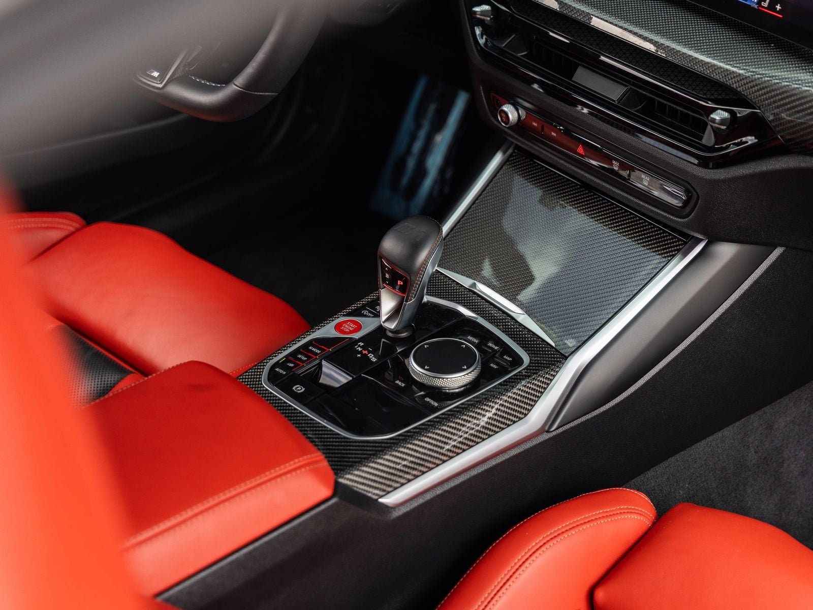 Engine and Performance: At the heart of this high-performance coupe is a 3.0-liter BMW M TwinPower Turbo inline 6-cylinder engine, delivering an exhilarating 503 horsepower and 479 lb-ft of torque. Paired with an 8-speed M Sport automatic transmission with Drivelogic, this M4 Competition offers lightning-fast shifts and precision control. Equipped with Adaptive M Suspension, M Sport Differential, and M Compound Brakes, it delivers exceptional handling dynamics and track-inspired performance.