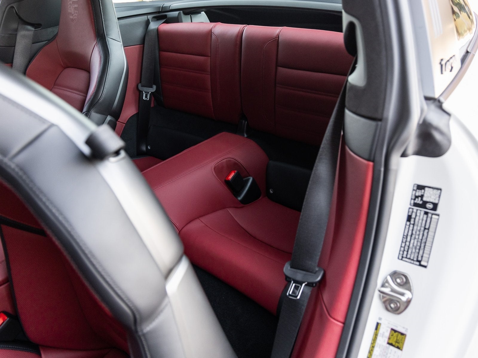 Step inside and the Leather Interior in Black/Bordeaux Red greets you, exuding an air of luxury that only Porsche can deliver. The Adaptive Sport Seats Plus (18-way) with Memory Package provide exceptional comfort and support, while the Heated GT Sport Steering Wheel in Race-Tex with Trim in Matte Carbon Fiber adds a purposeful, performance-driven touch. The Extended Dashboard and Door Panel Package in Leather, Interior Trim Inlays in Matte Carbon Fiber, and Illuminated Door-Sill Guards in Matte Carbon Fiber speak to a bespoke level of craftsmanship.