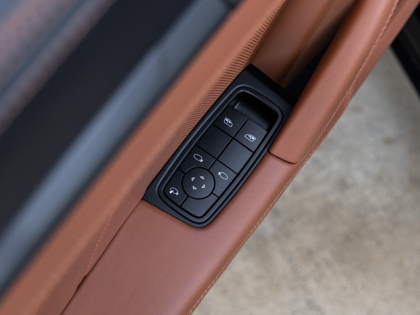 Step inside and the Club Leather Interior in Basalt Black/Classic Cognac (Semi-Aniline) greets you, exuding an air of luxury that only Porsche can deliver. The cabin showcases exquisite attention to detail with Deviated Stitching Interior Package in Classic Cognac, a 930 Leather Package, and Door-Sill Guards in Black Brushed Aluminum, Illuminated. The Porsche Crest on Headrests (Front) and Center Console Lid with Model Designation reinforce this car's bespoke refinement, while Adaptive Sport Seats Plus (18-way) with Memory Package and Ventilated Seats provide unparalleled comfort.