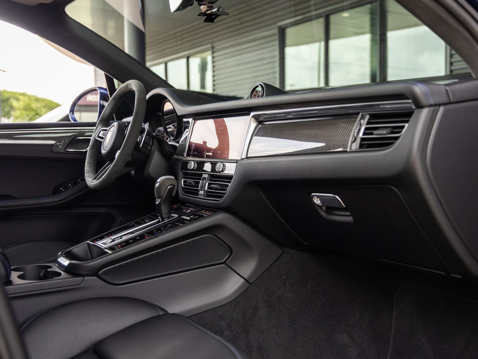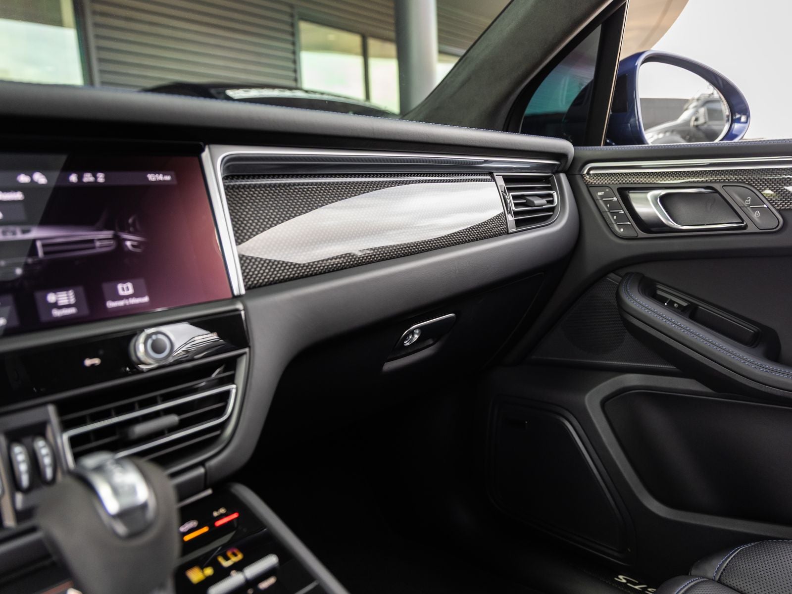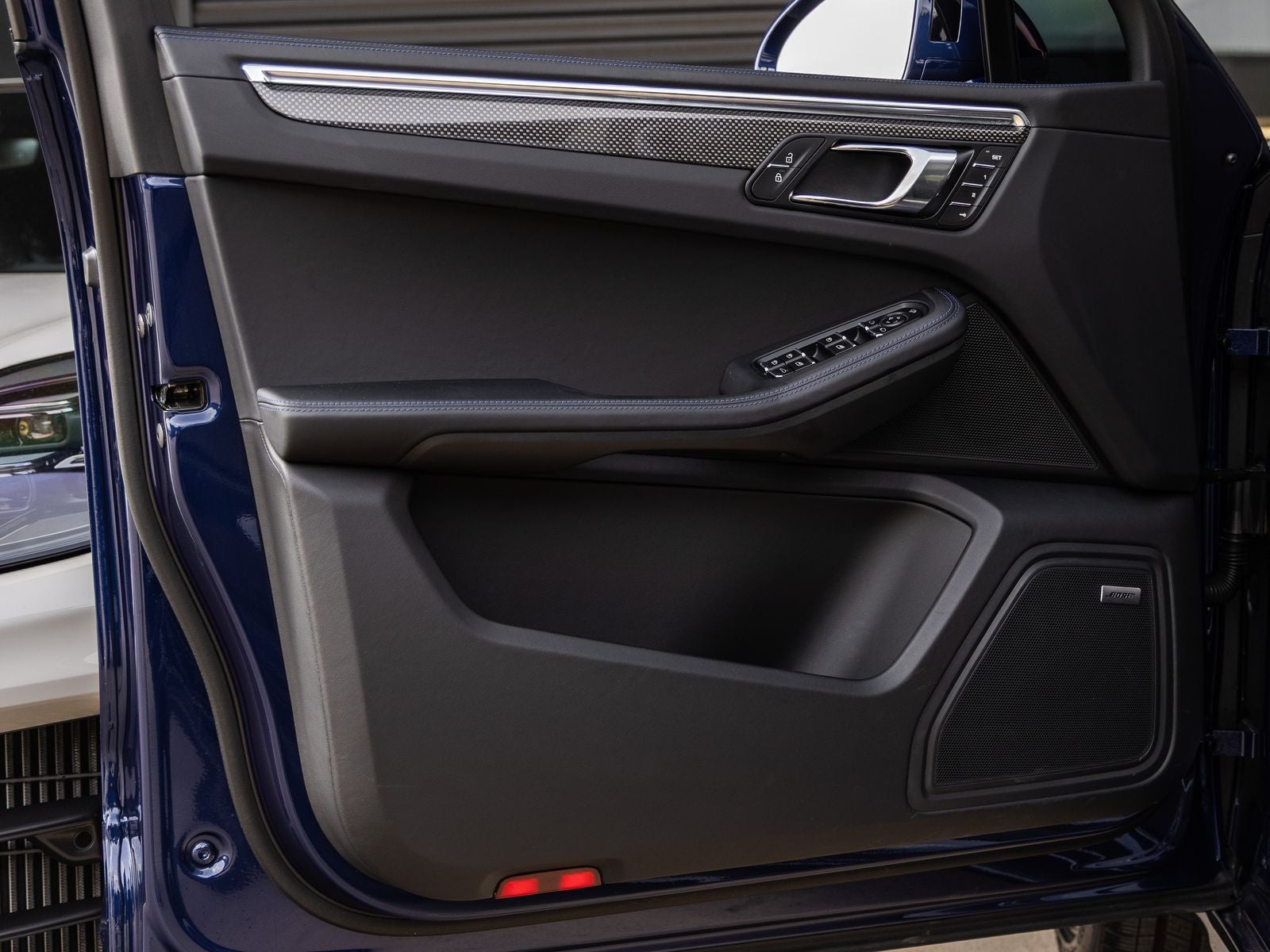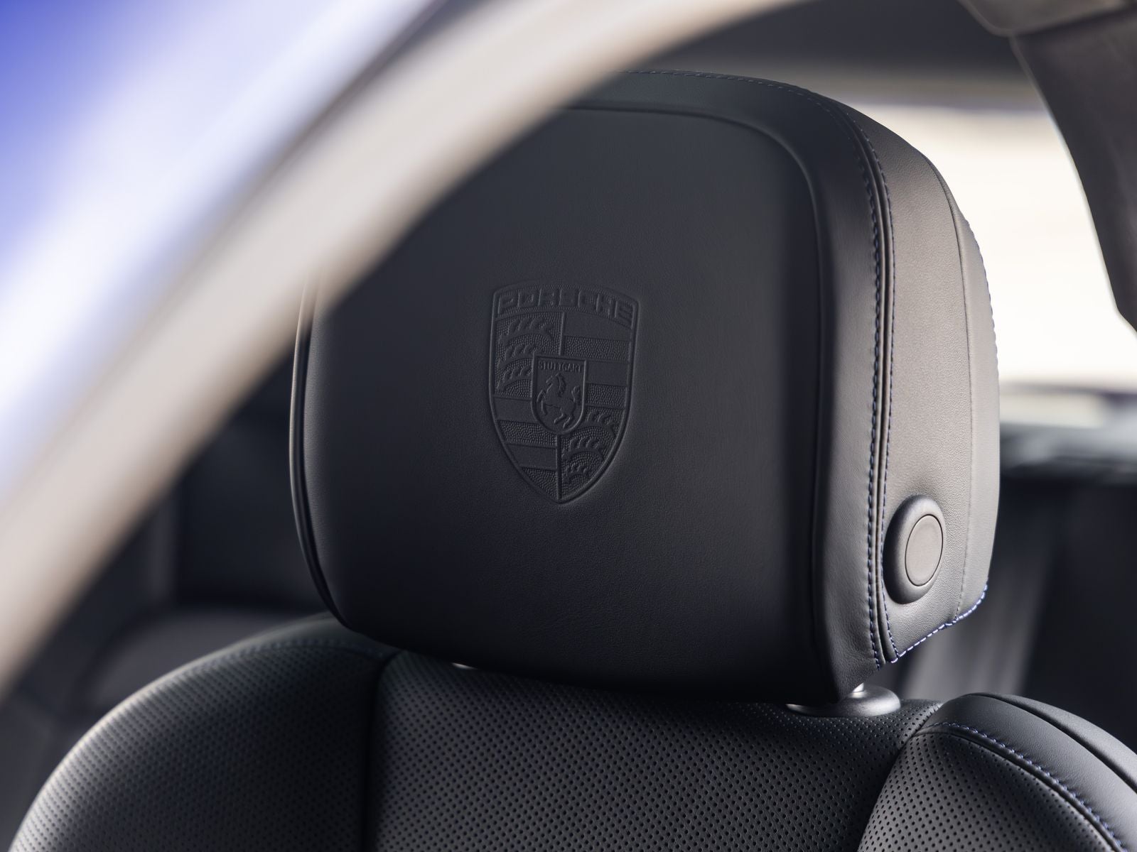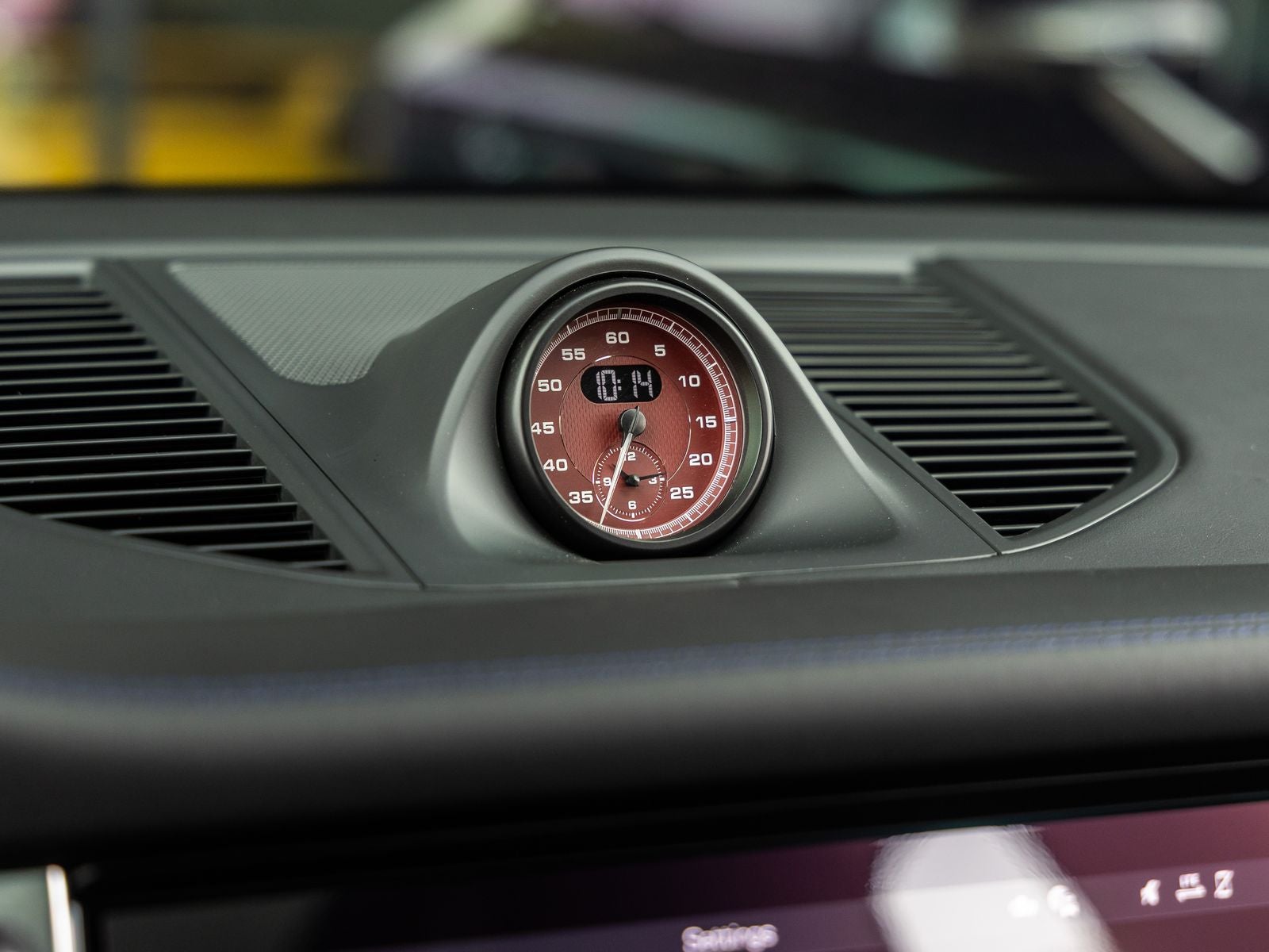 Step inside and the Leather Interior in Black with Deviated Stitching in Gentian Blue greets you, exuding an air of bespoke craftsmanship that only Porsche can deliver. The cabin is richly appointed with carbon fiber trim, Race-Tex roof lining, and illuminated carbon fiber door-sill guards. Adaptive Sport Seats Plus (18-way) with memory, along with heated and ventilated seating, ensure exceptional comfort, while fine details like Bordeaux Red instrument dials add a unique and sporty flair.