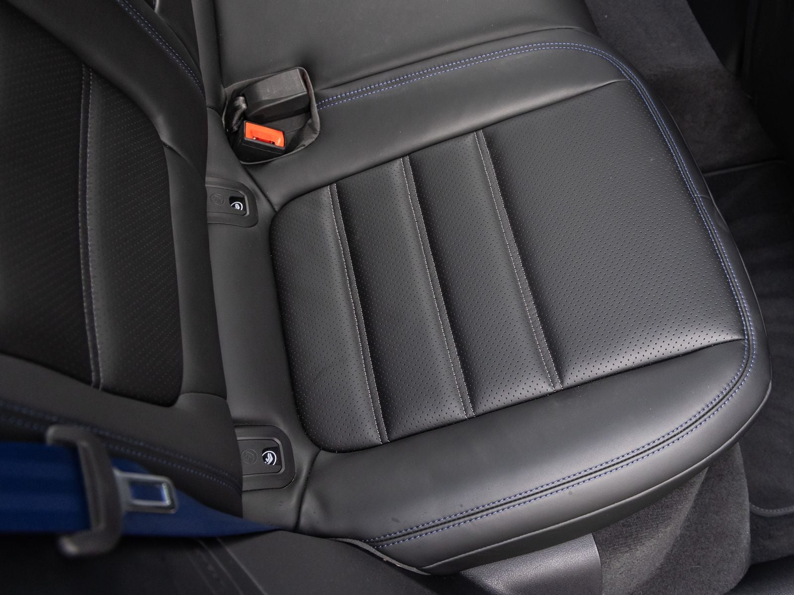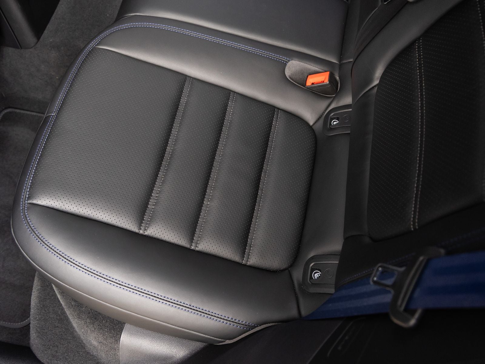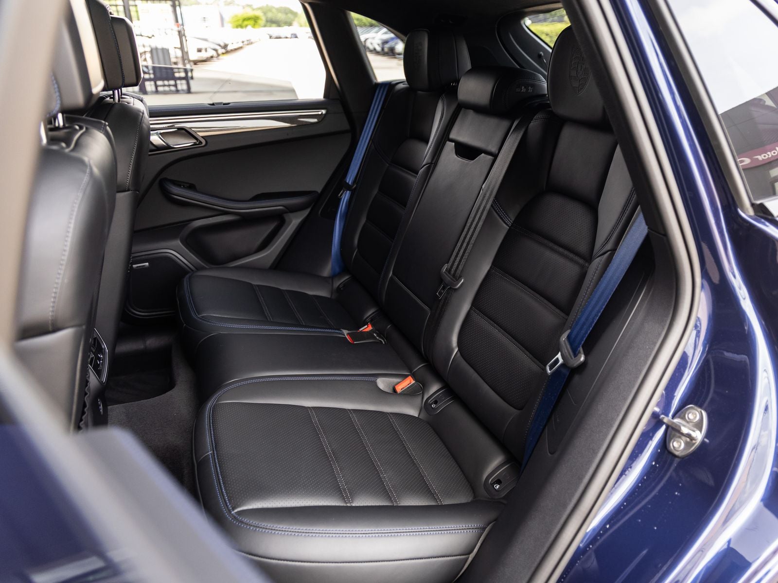 The Macan GTS stands as a beacon of design and performance, its Gentian Blue Metallic exterior not just a color, but a bold expression of Porsches sporting heritage. Adorned with LED Headlights in Black including Porsche Dynamic Light System Plus (PDLS+), 21-inch wheels, and High Gloss Black accents, it presents a dynamic and aggressive stance. The Sport Chrono Package and exclusive design elements, including carbon fiber accents and red model designation details, further elevate its athletic character.